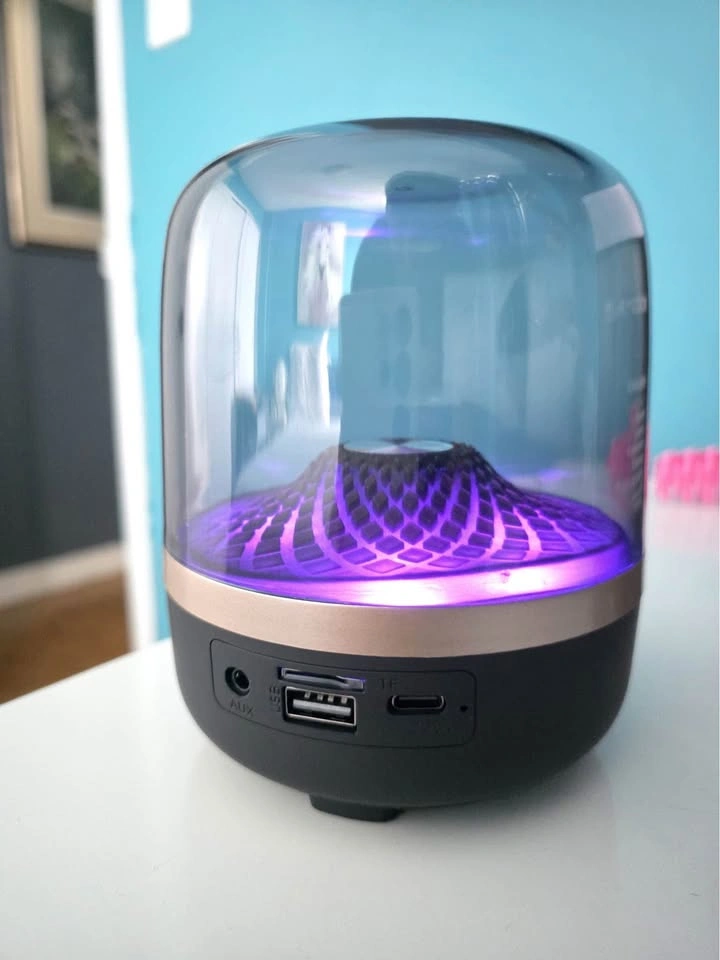 86This stylish LED speaker delivers great bass, clear sound, and beautiful ambient lighting with 5 color modes. It features Bluetooth connectivity, AUX input, USB/TF playback, and a rechargeable design—perfect for bedrooms, parties, or relaxing mood lighting.