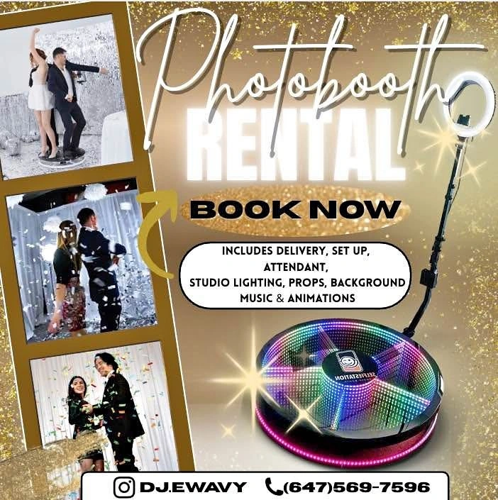 Take your event to the next level with our 360 camera photobooth — perfect for weddings, birthdays, corporate parties, proms, and more! ✨ What’s Included: ✅ On-site attendant ✅ Studio lighting & ring light ✅ Props & background ✅ Background music & animations ✅ Instant HD videos ready to share! Now booking for fall & winter events! Follow on Instagram: @dj.ewavy