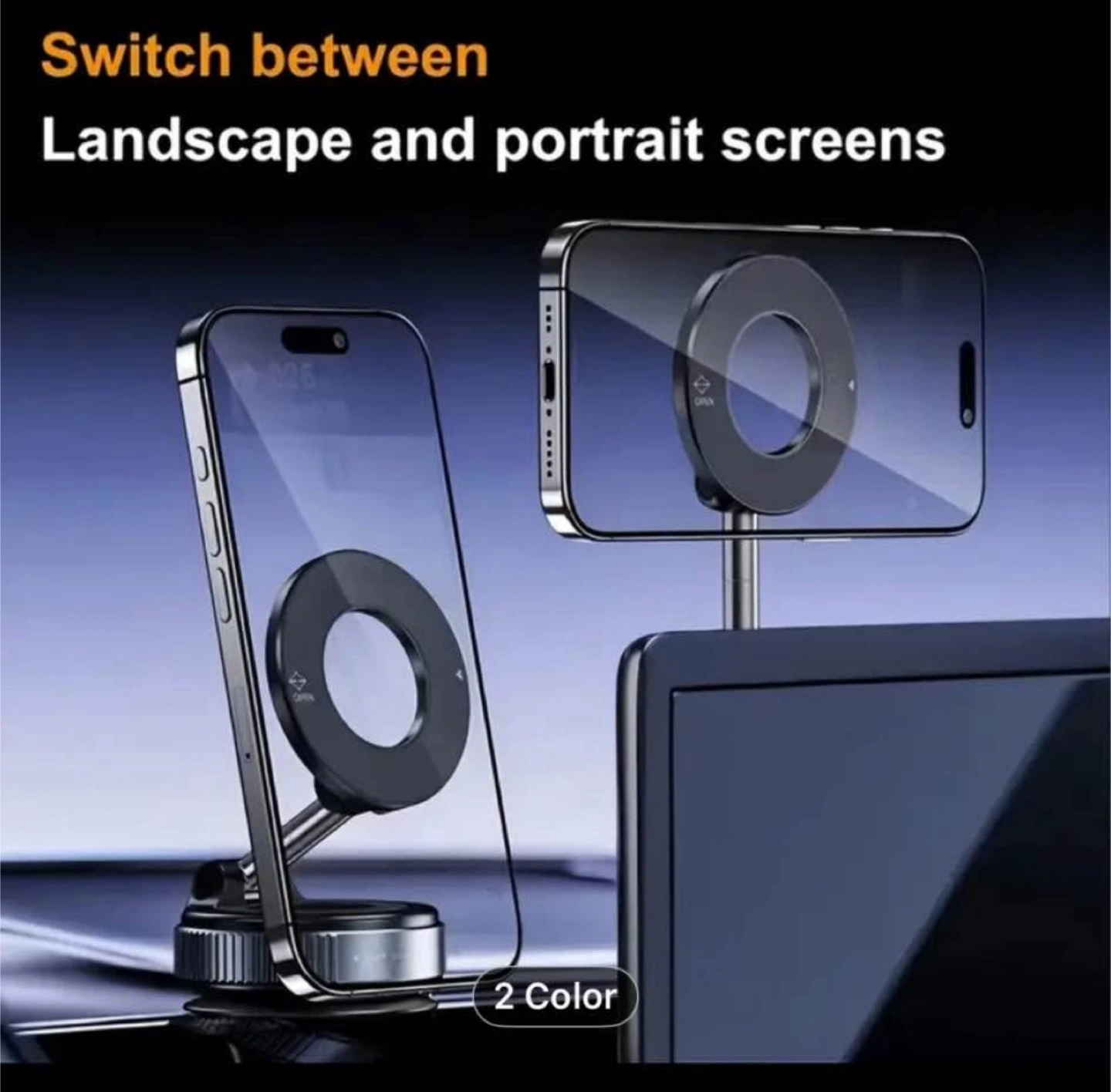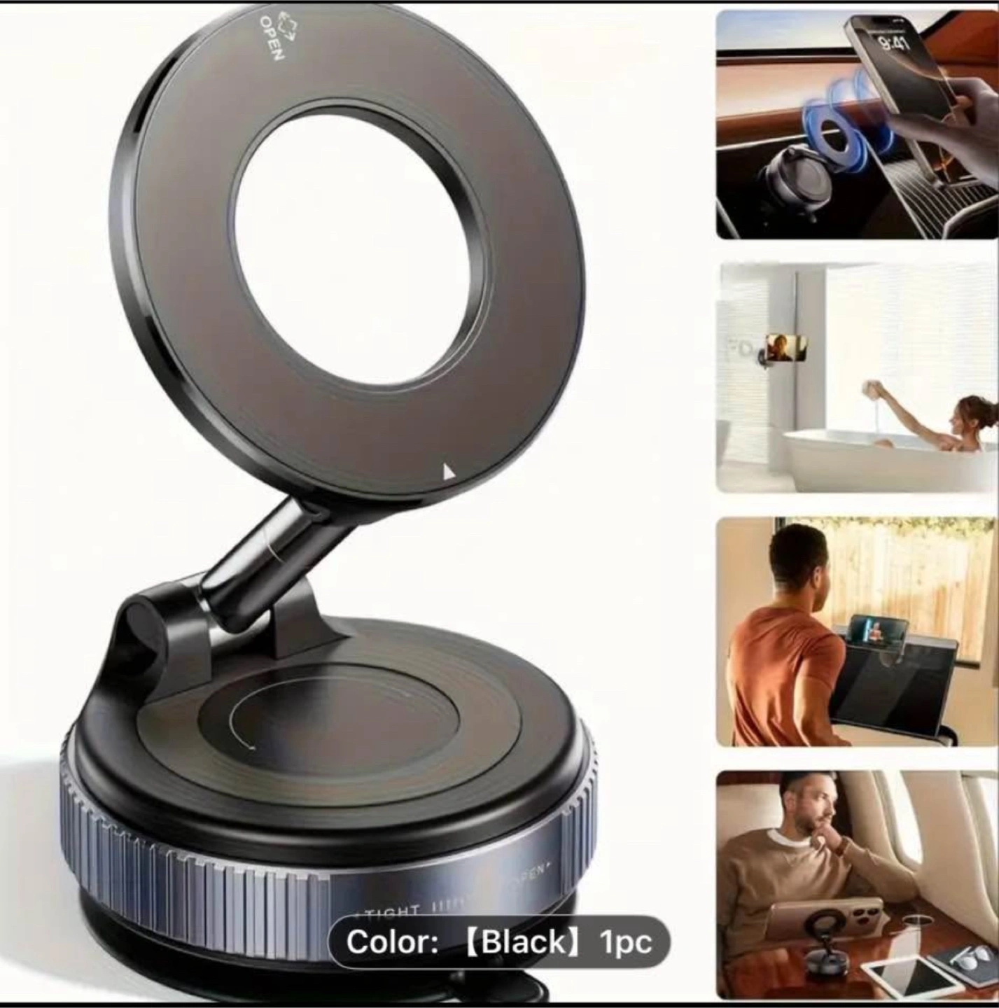 63360° Rotating Magnetic Phone Stand for iPhone 16/15/14/12 - Foldable & Retractable ABS Material, Multi-Use for Indoor/Shower/Gym, Sleek Black Design, Not Waterproof, Versatile Phone Holder, Modern Accessory, Smooth Finish