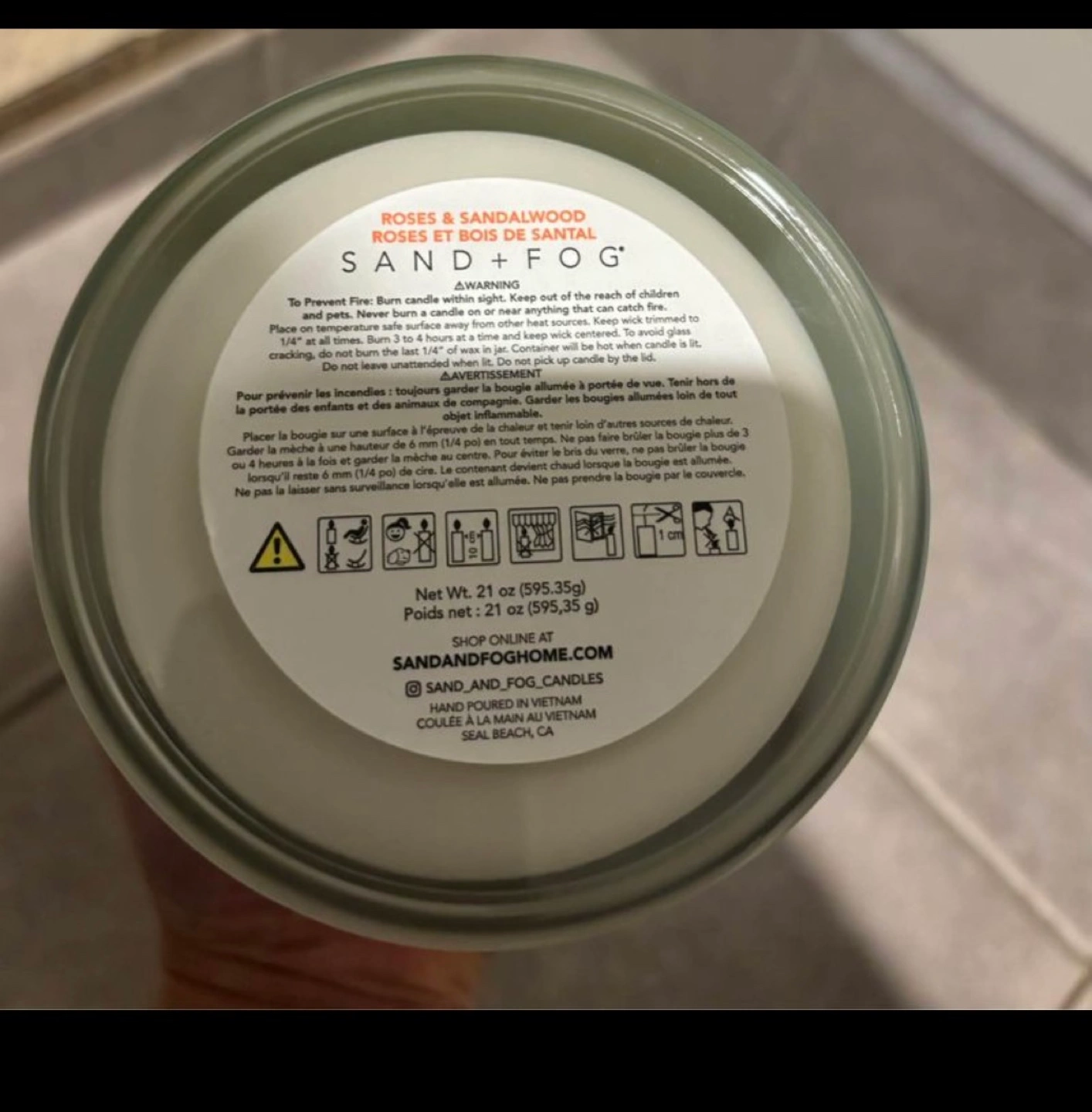 New, unused candle with wooden lid. Made with natural essential oils. Scented candle, Roses & Sandalwood.