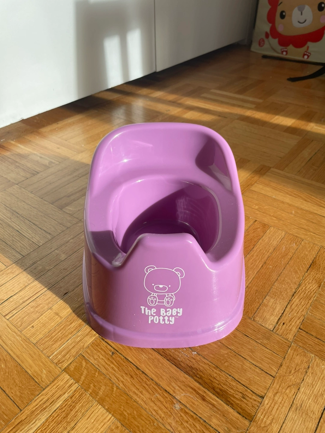 This potty is a great one for starting potty training or elimination communication (EC) early. Can be used with a baby as young as a few months old (mine started at 4 months). It is very small.