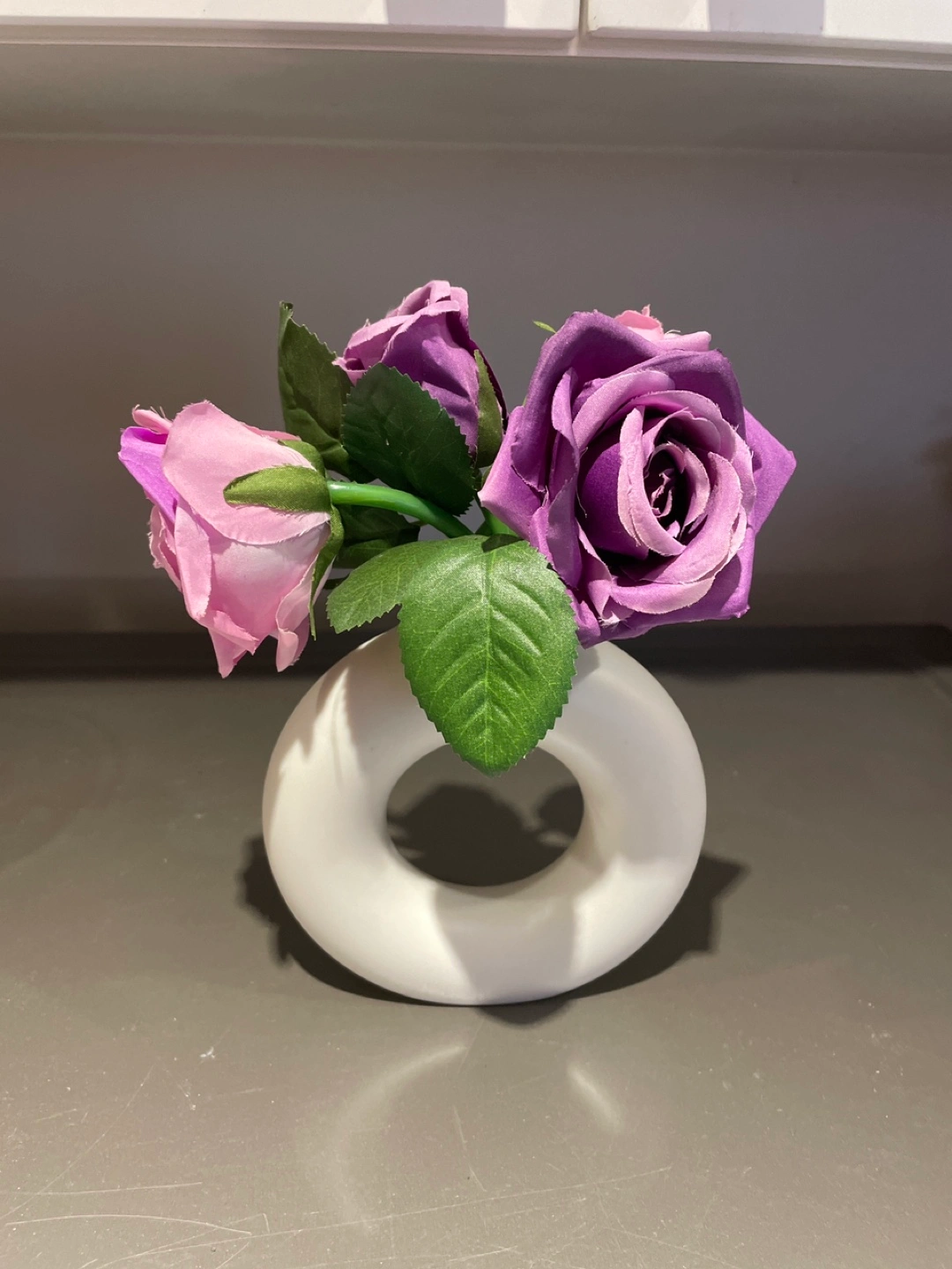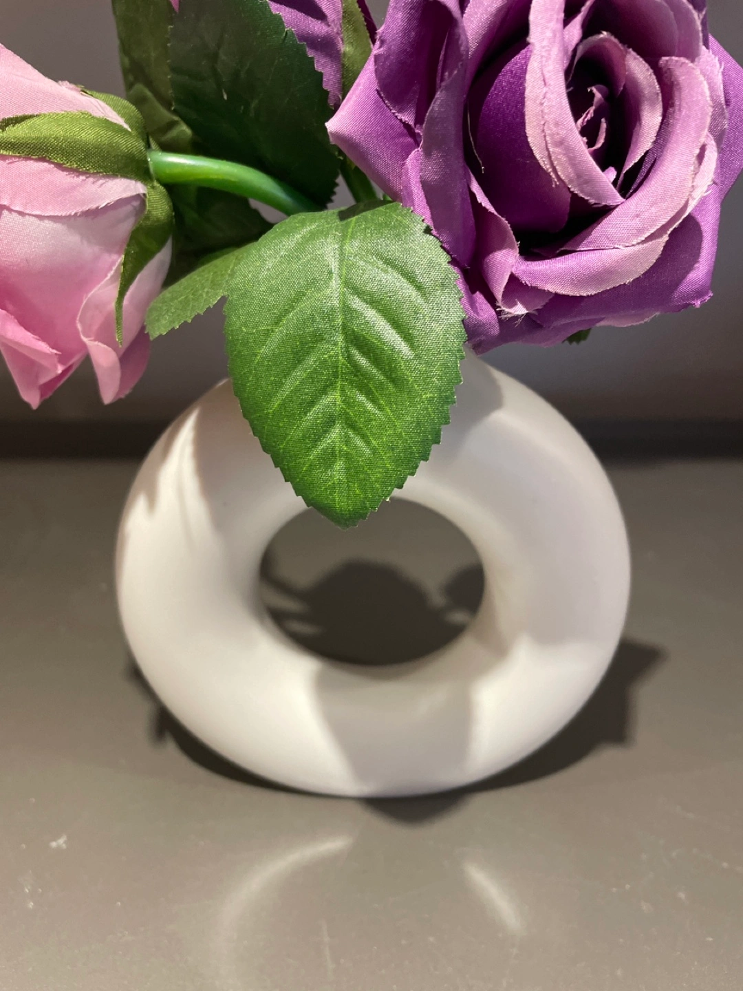 White Donut Vase with artificial flowers