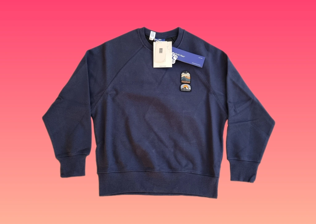 55Long-sleeved navy blue sweatshirt with a patch on the front. Size L.