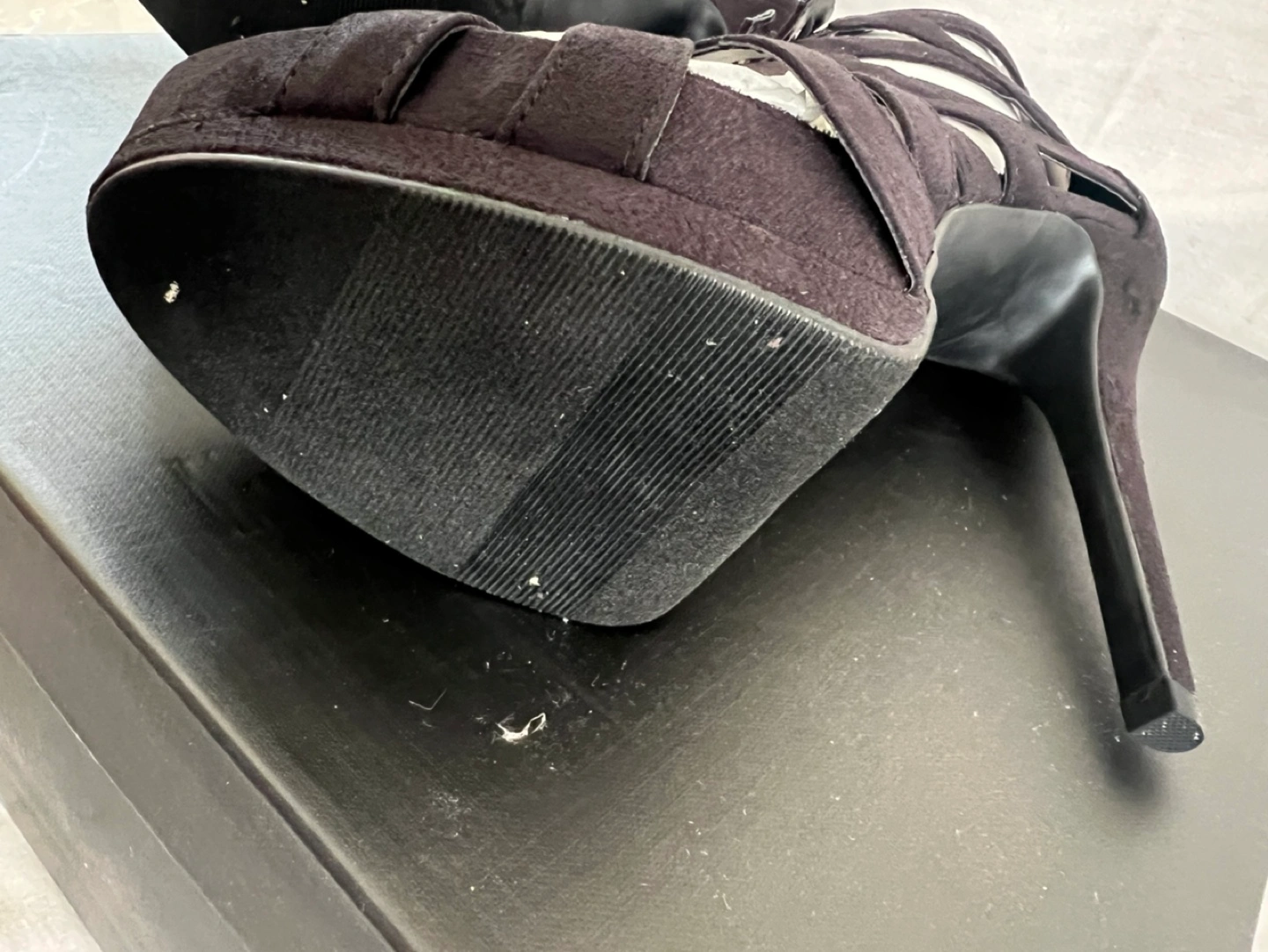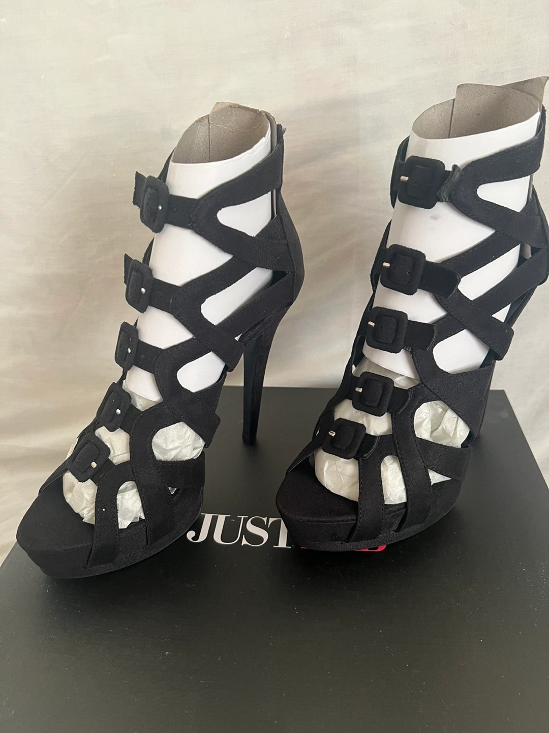 21Black platform heels with buckles. Includes original box and heel protectors.