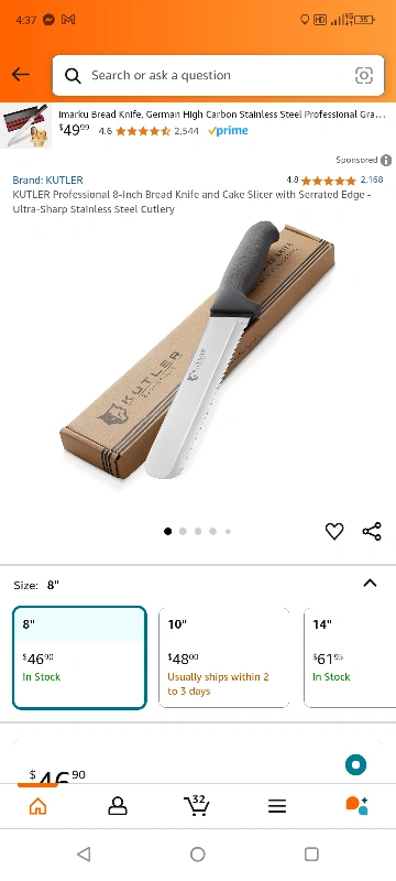 1108-inch serrated bread knife with black handle. High-carbon stainless steel. Comes in original box.
