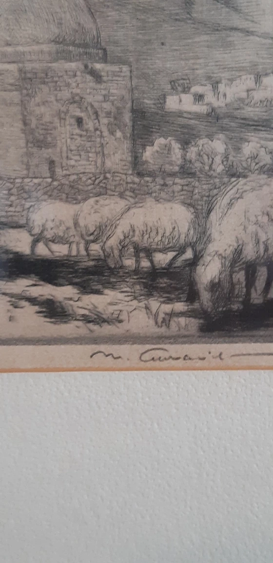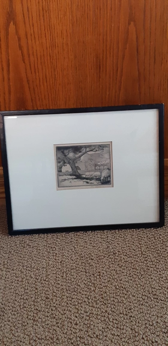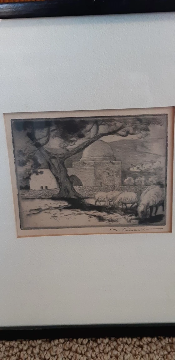 810Black and white etching with Biblical theme (Rachel's Tomb) Signed by the artist Purchased in the 1930's Beautifully matted and framed
