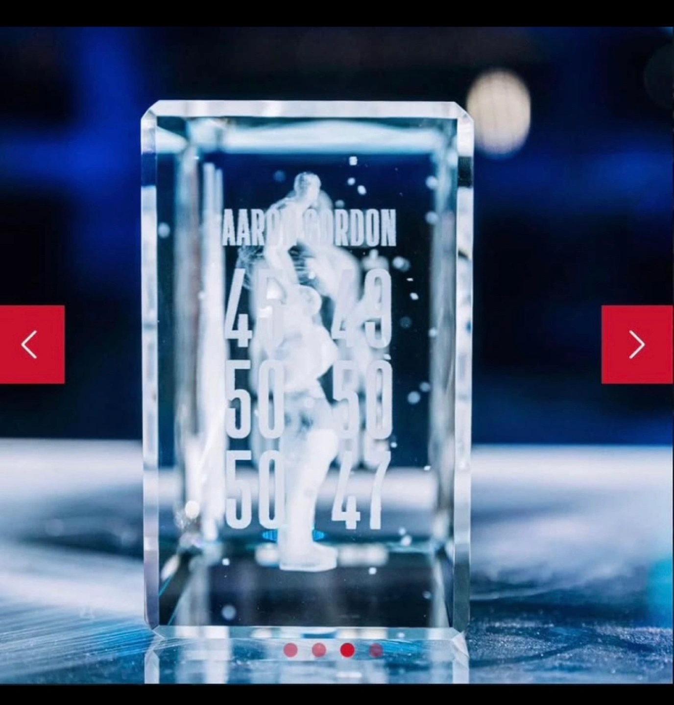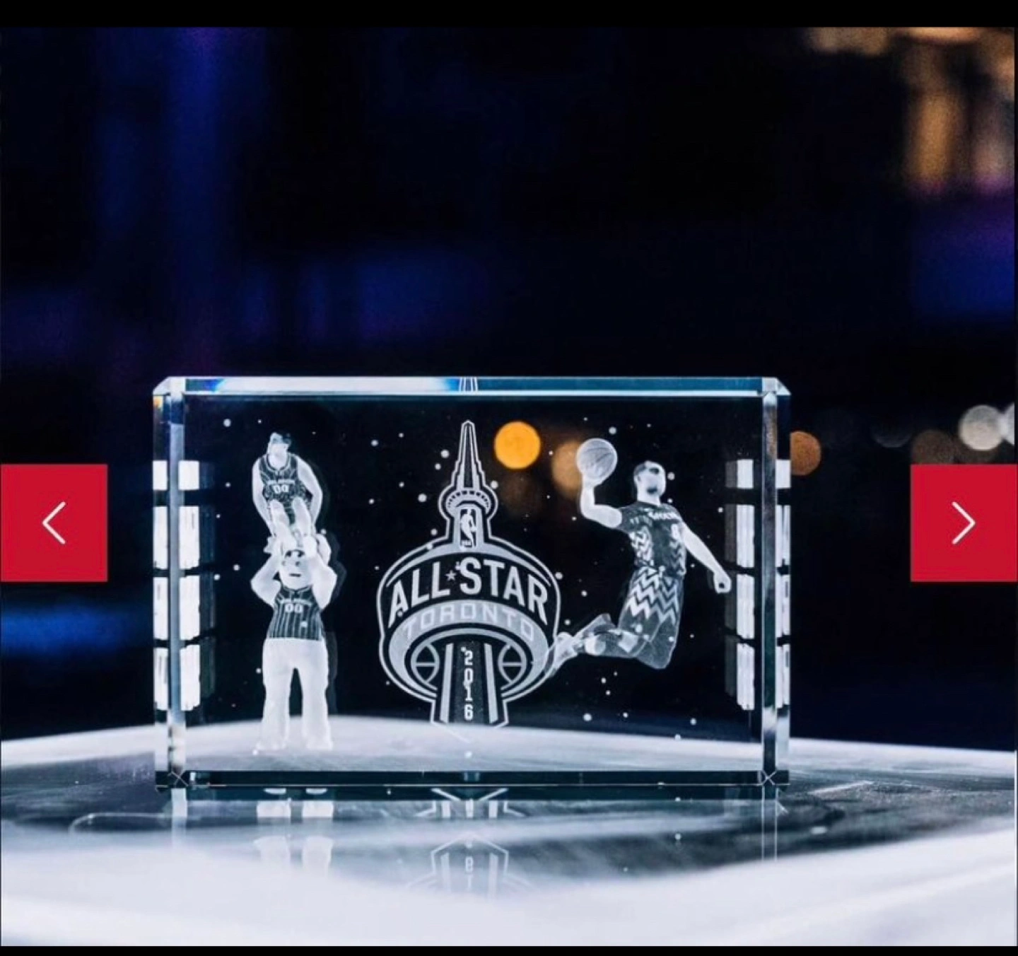 Six years ago, the first NBA All-Star was held outside the U.S. during an unusually cold weekend in Toronto. The two finalists from the 2016 Slam Dunk Contest, Aaron Gordon and Zach LaVine, put on a show for the ages with their raw athleticism and pure creativity. While temperatures in Toronto dipped below -20°C, they recorded a string of 50s, which lead to an iconic and inspiring contest. The two players are suspended mid-dunk in a clear ice-like cube, alongside their final scores.