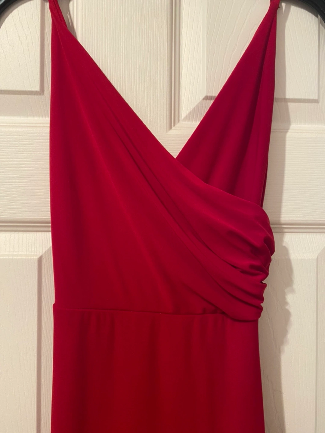 Stunning “Le Chateau” Red long Prom dress with a V-neck and spaghetti straps. Back zipper closure. The dress has a slit on left aide. Size XXS Paid $275 Excellent Condition!