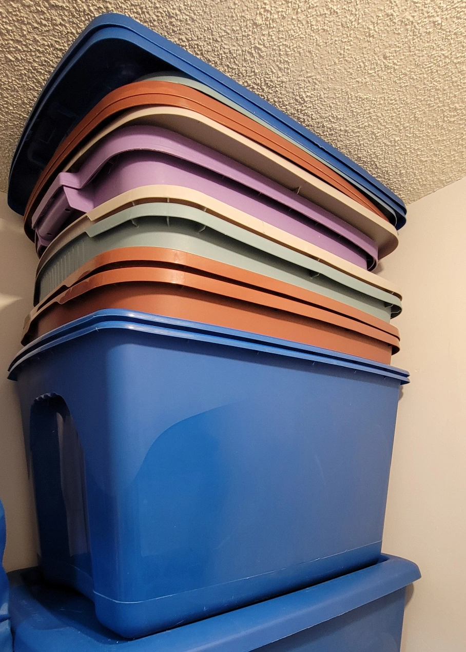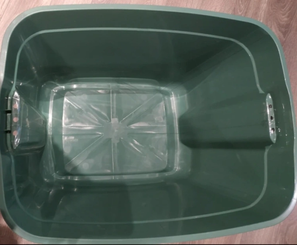 Large storage box 68 L with lid. Great for organizing and storing items. $ 5 each total of 6 containers for sale. These plastic multi-purpose containers are durable and used barely.