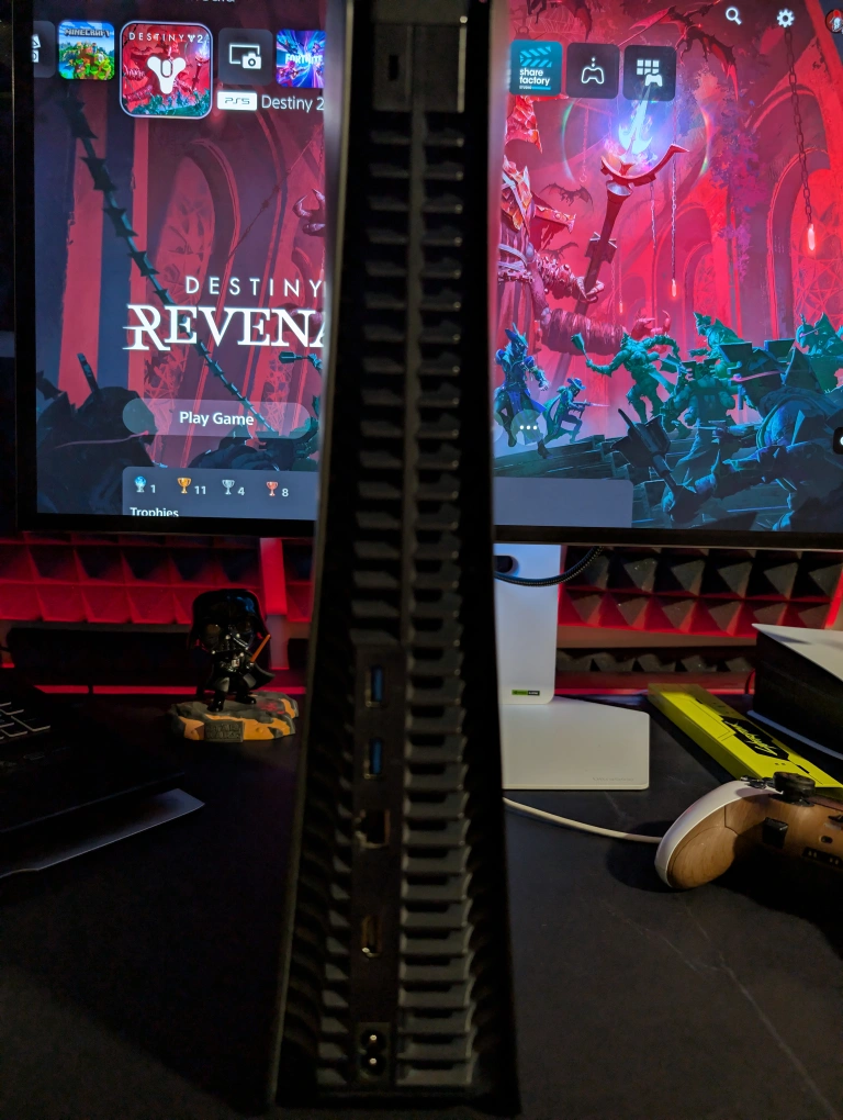 The PS5 is extremely light used, never positioned upwards, clean and in top working order.