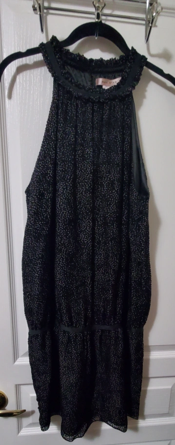 Only worn a couple times. In excellent condition. Halter neckline, short dress. Velvet black polka dots. Versatile dress, can be worn in all seasons. Looks great with boots or heels.