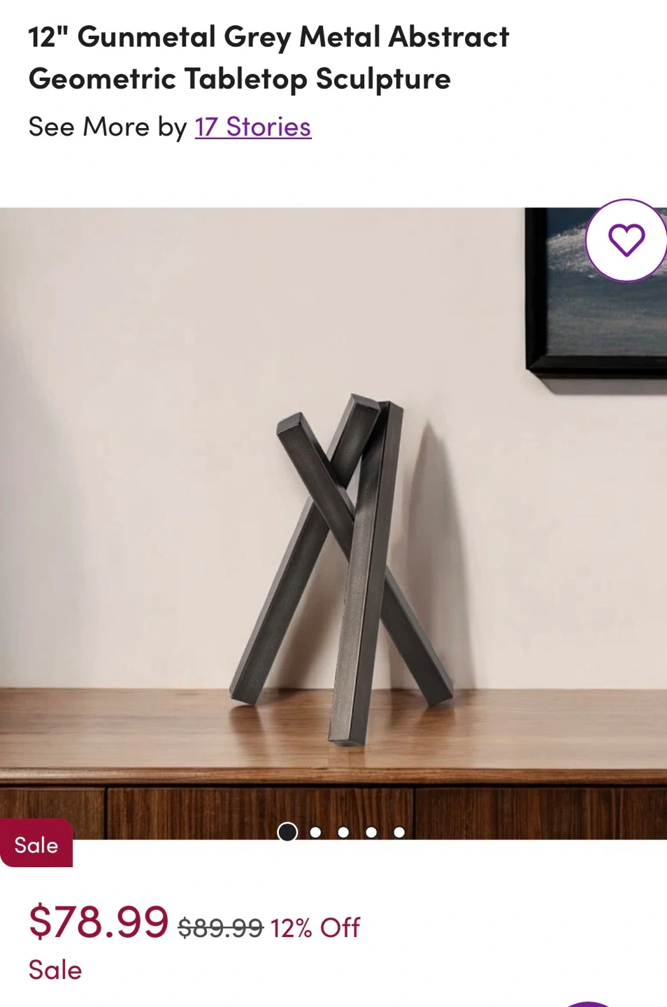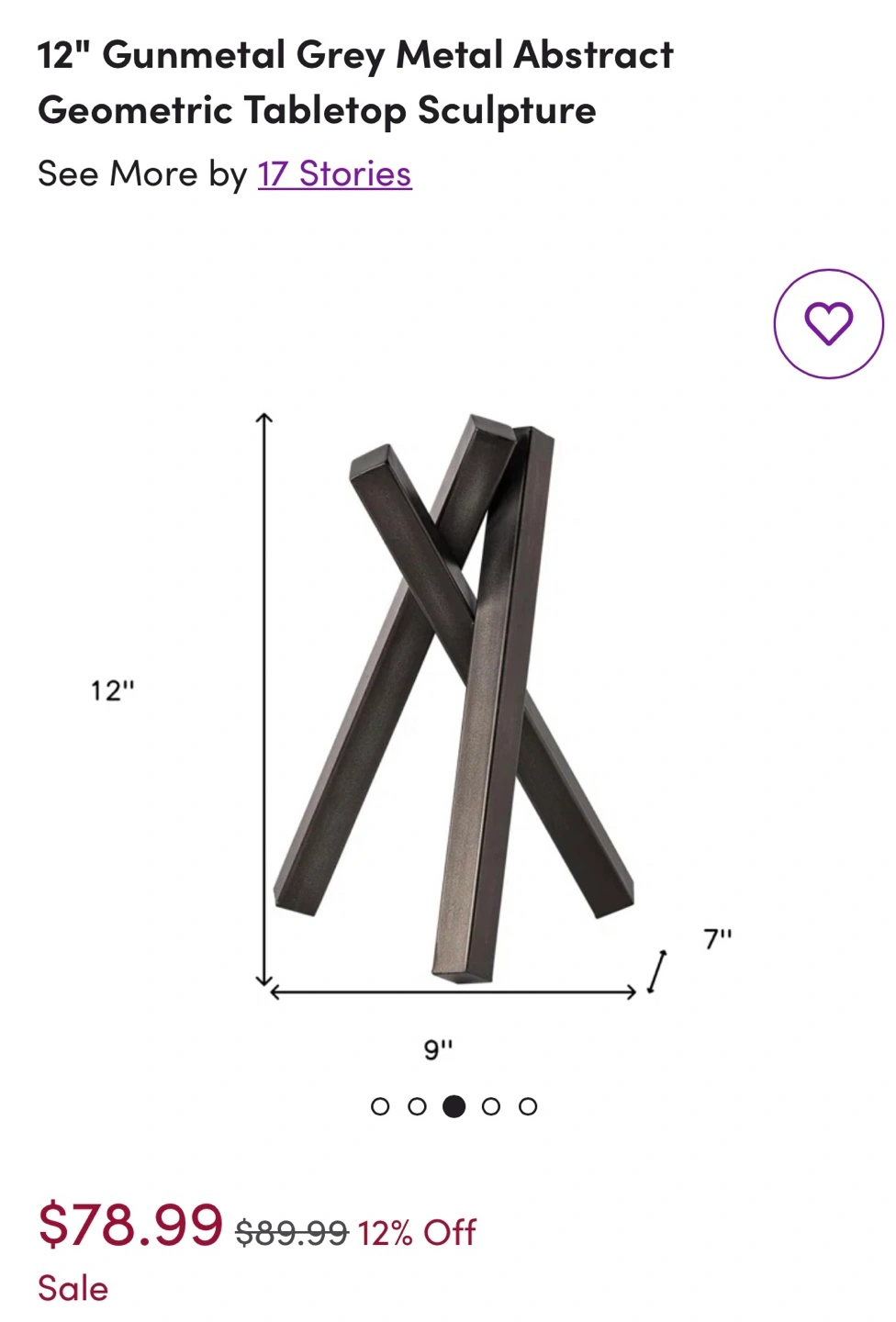 Abstract geometric tabletop sculpture. Gunmetal grey finish. 12 inches tall.