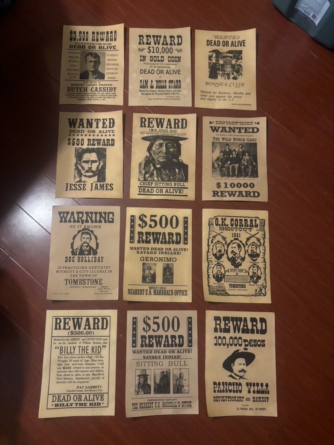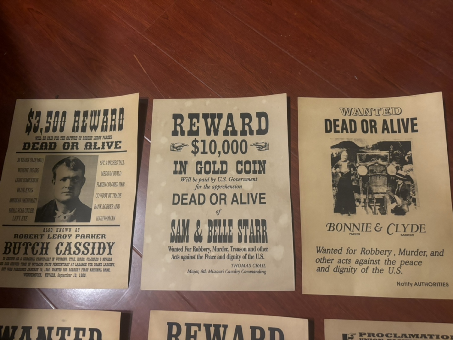 1 / 51 / 5Buy & SellWanted Posters Set of 12 vintage styleWanted Posters Set of 12 vintage style$6Set of vintage style wanted posters, featuring famous outlaws and historical figures. Printed on paper.WHERE TO MEETCheck LocationView MapSELLERJoanneClairlea25129 reviews1 chats·0 favorites·33 viewsSEND CHAT TO SELLERHi Joanne! I’m interested in your listing.Hi Joanne! I’m interested in your listing.Get the Karrot app to chatSign In to chat