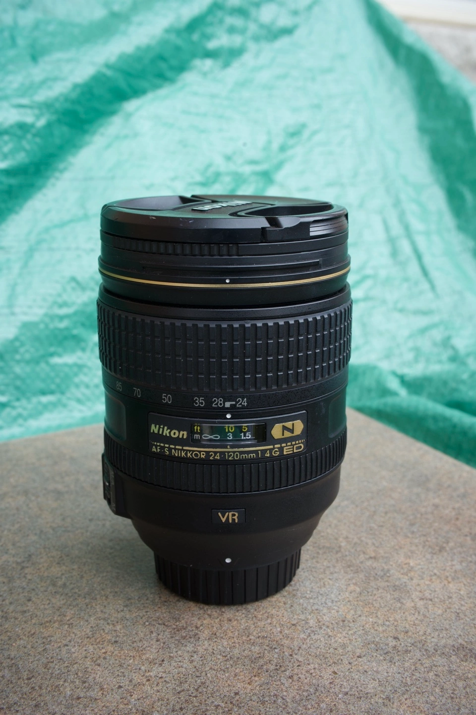 Nikon AF-S NIKKOR 24-120mm f/4G ED VR lens. Includes lens cap.