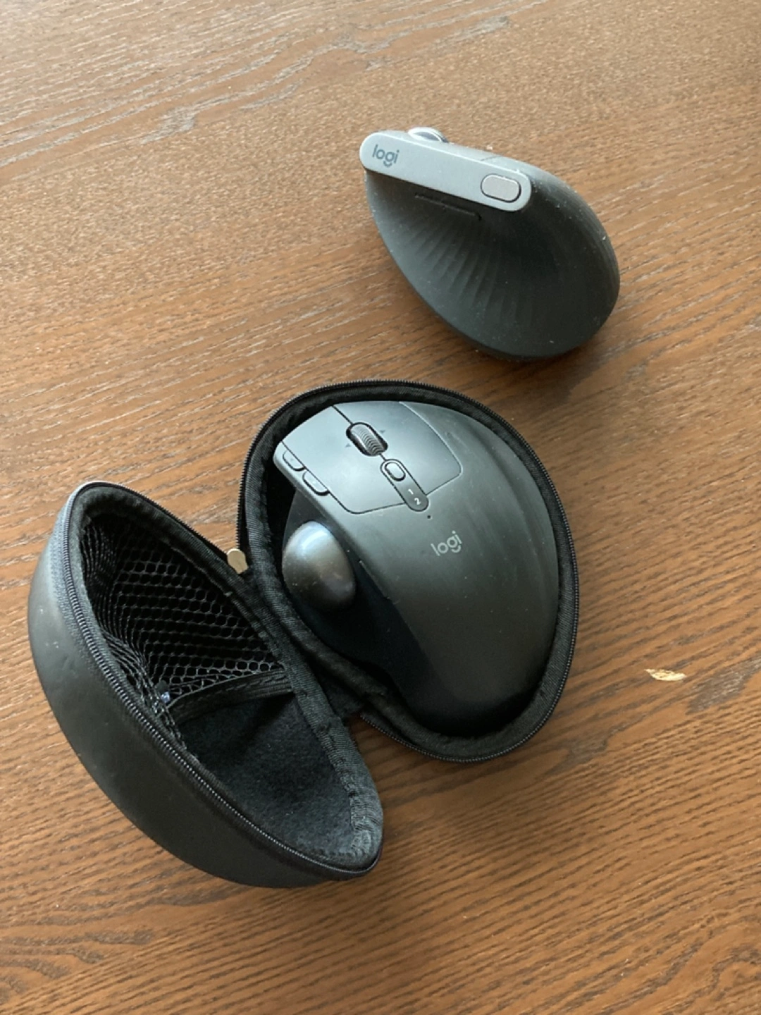Logitech Ergonomic trackball mouse with carrying case + MX vertical