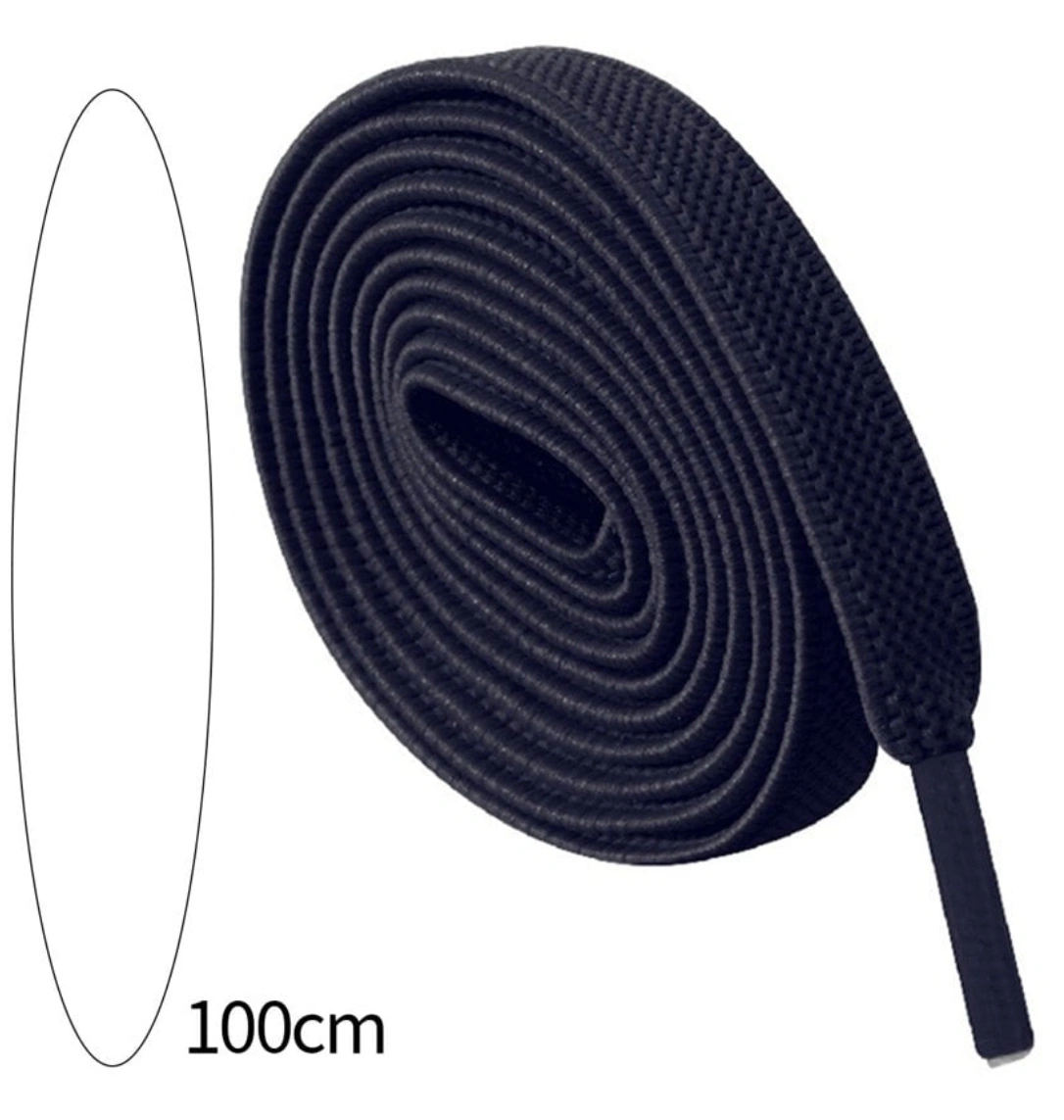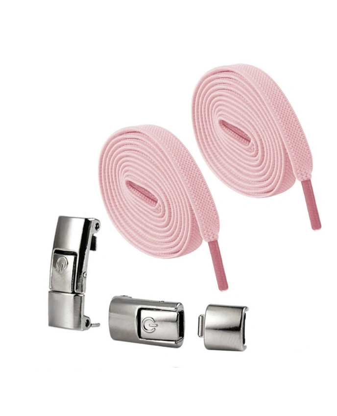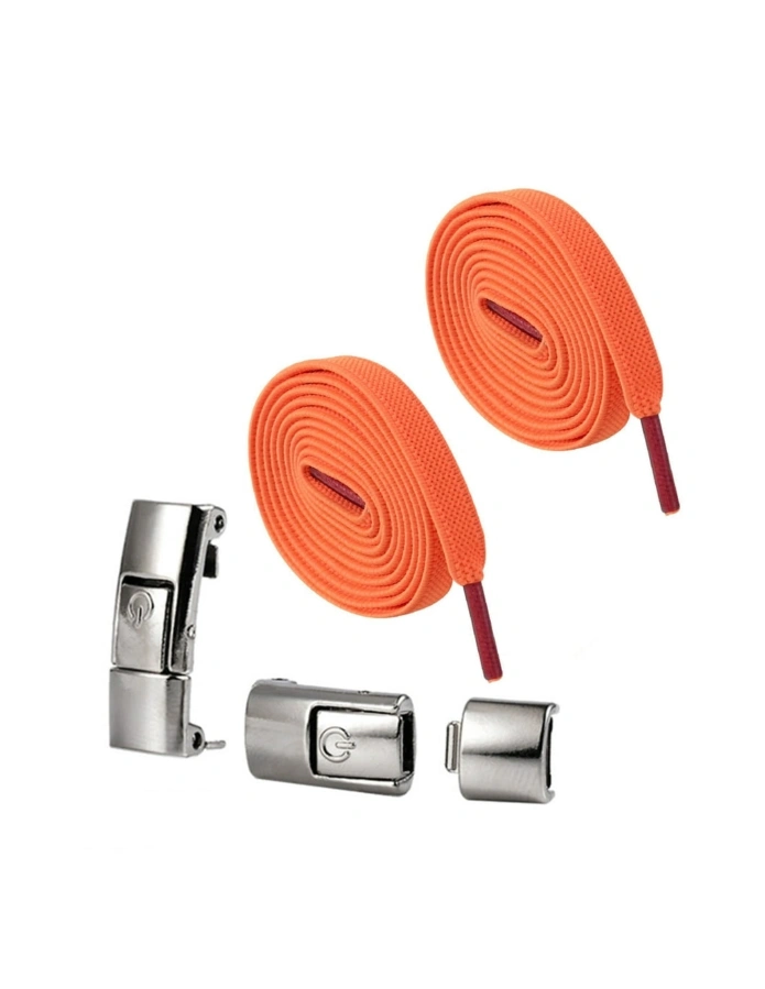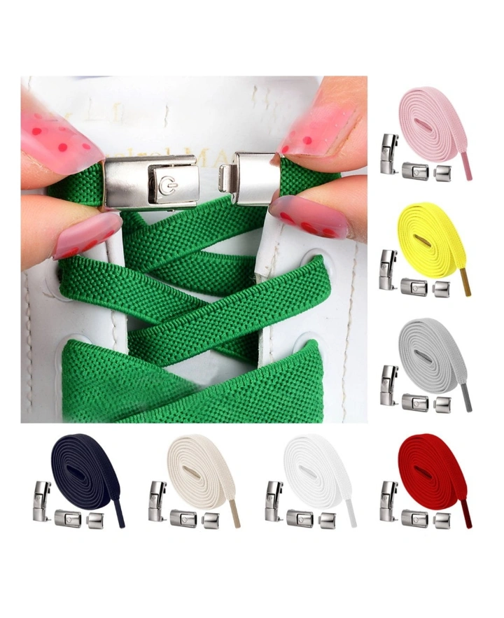 No tie shoelaces with metal clips. Easy to use, simply thread laces through the loops of your shoes and clip in place.