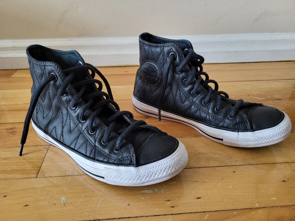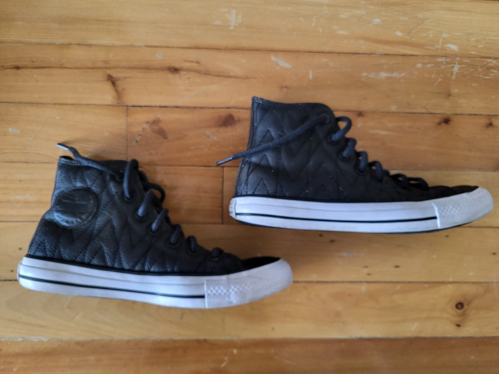 Clean Converse Hi Tops with laces, comfy built in insoles, in great condition, small place on one shoe where edging is separating (could easily be glued). Please see pictures for details :)