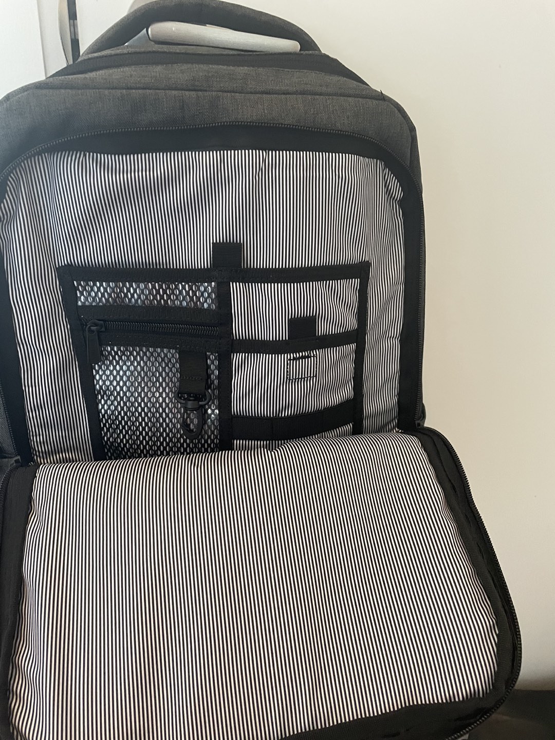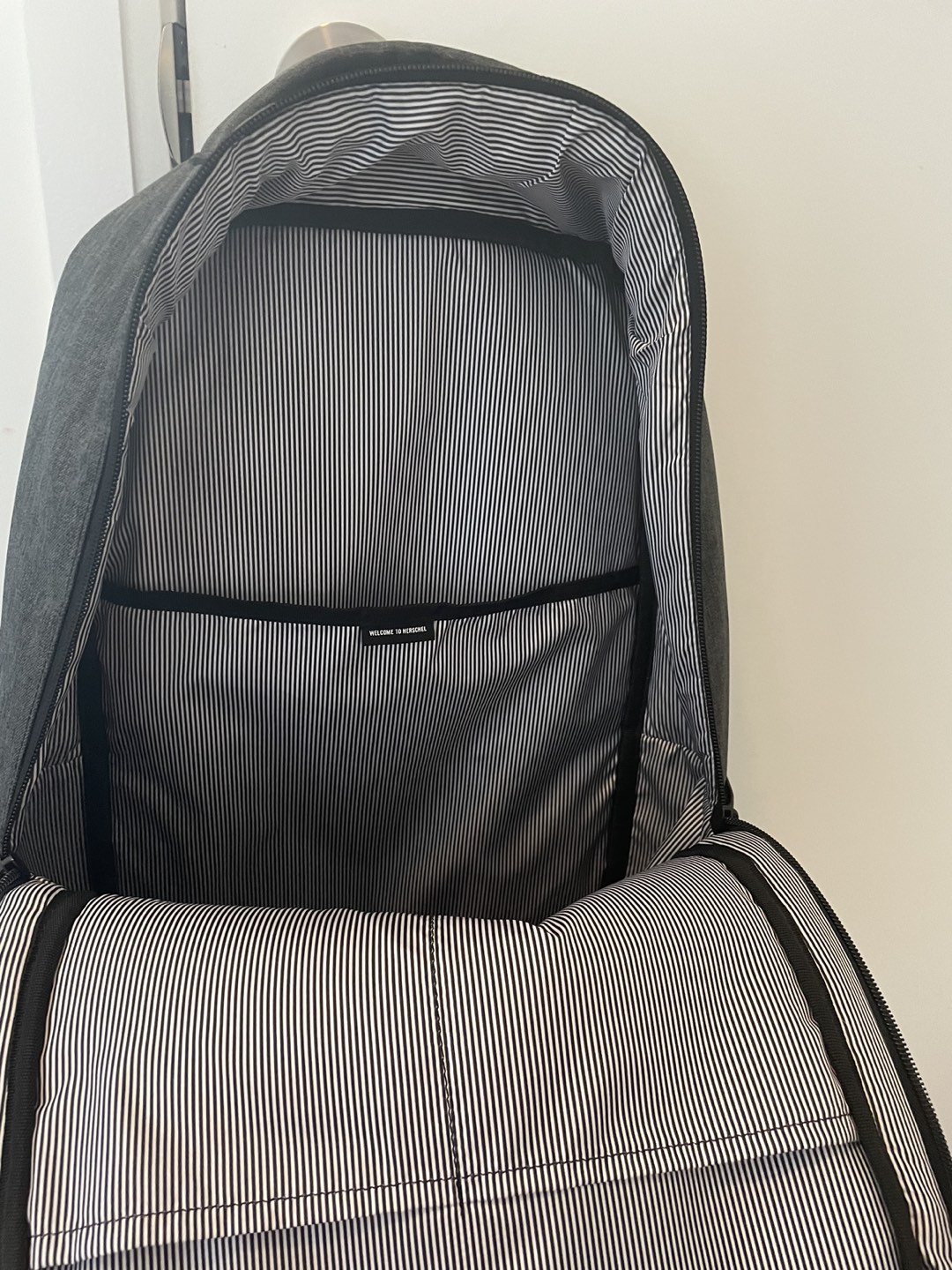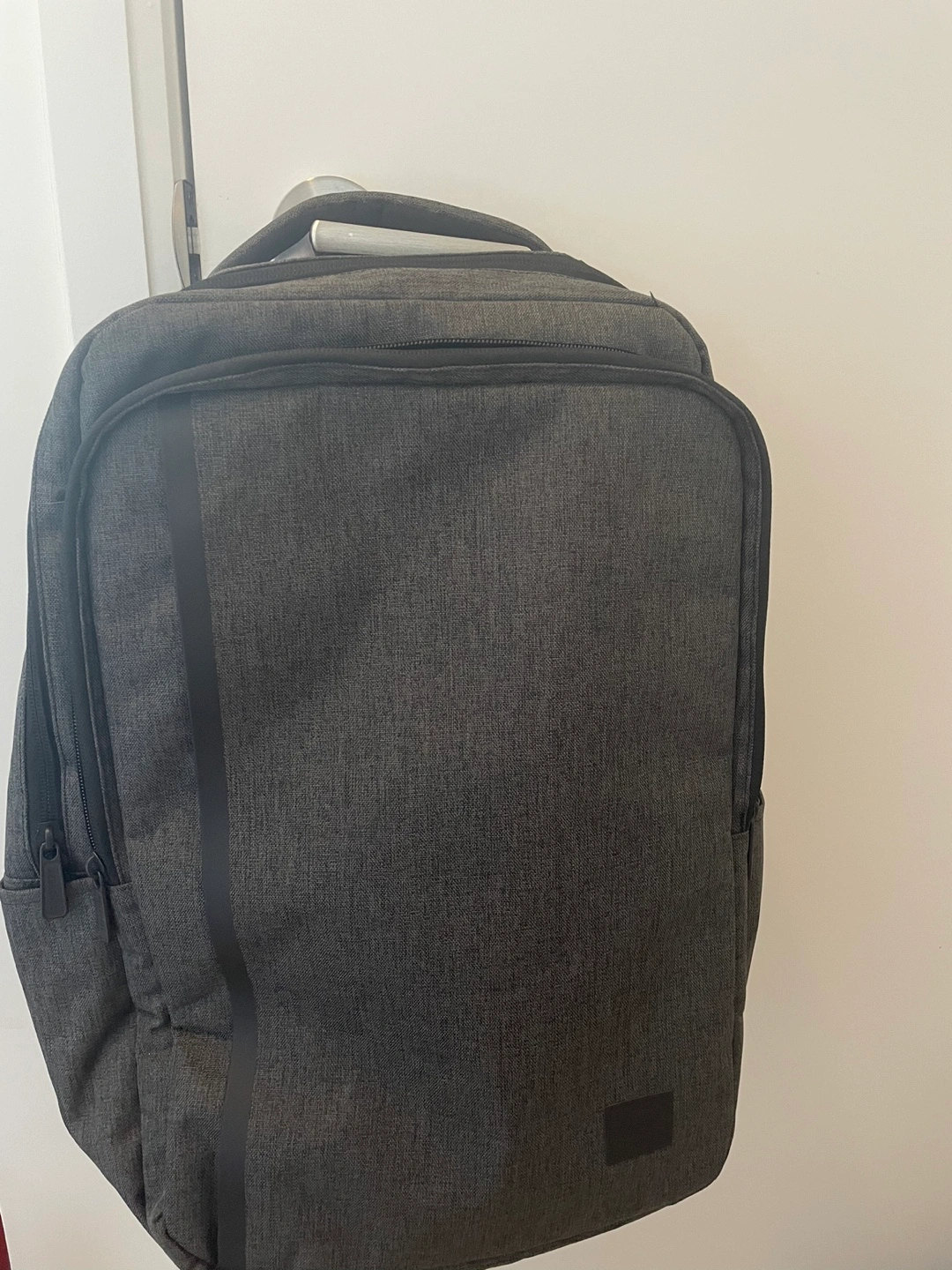 Brand new, used once Herschel backpack with laptop section. Grey exterior with striped interior. Multiple pockets and excellent capacity