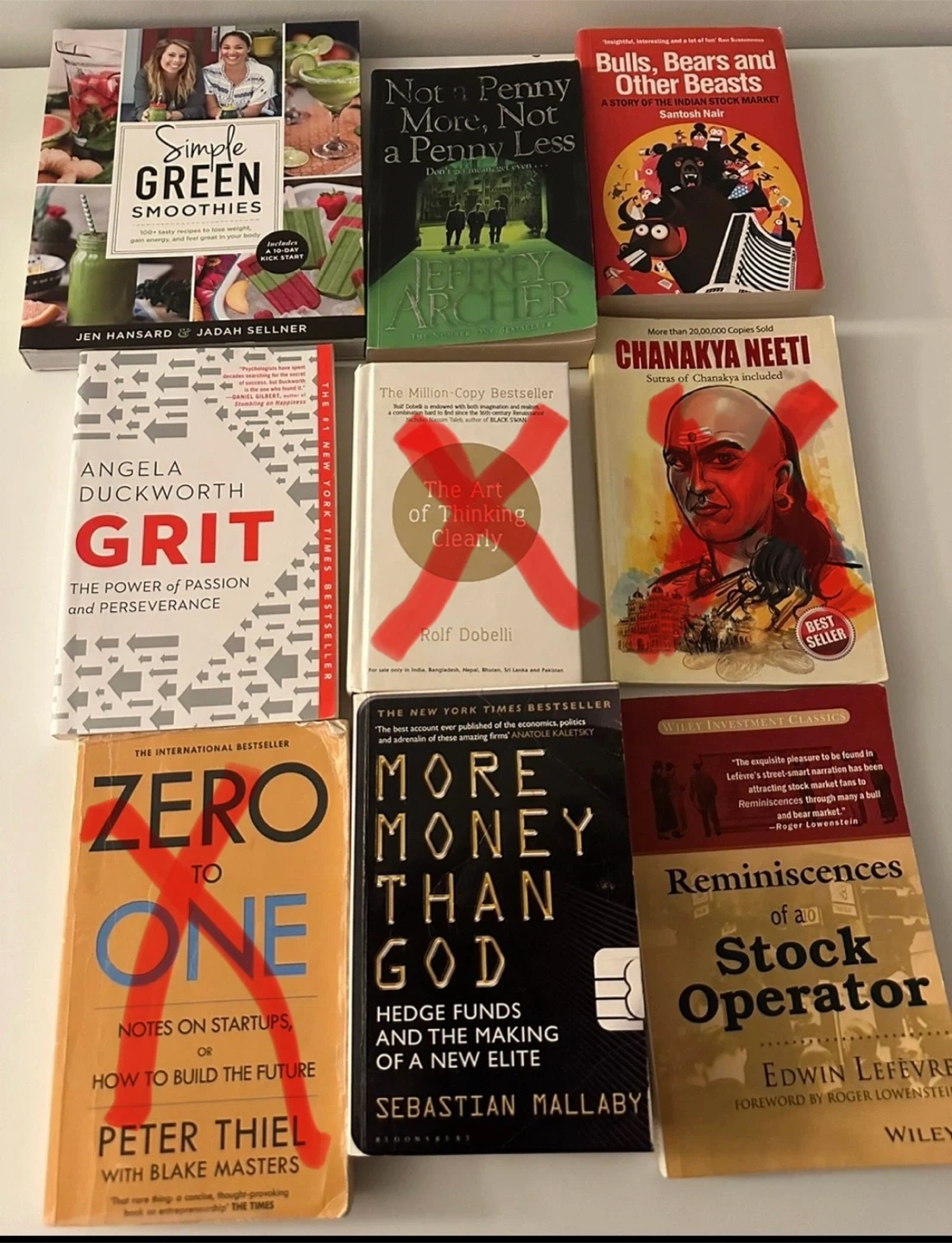 A lot of eight books, all hardcover. Books cover topics like finance, investing, and self-help.