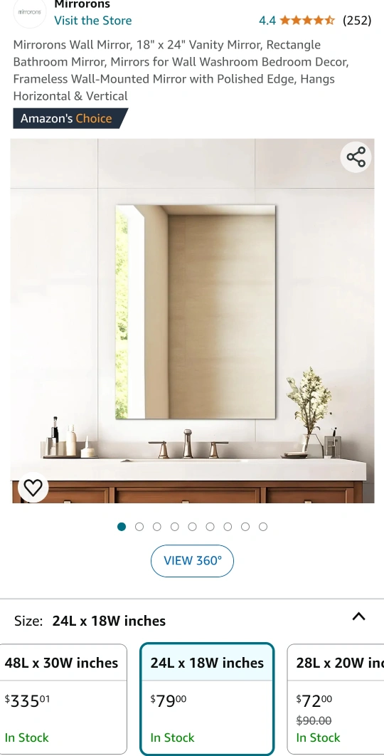 Mirrorons Wall Mirror, 18" x 24" Vanity Mirror