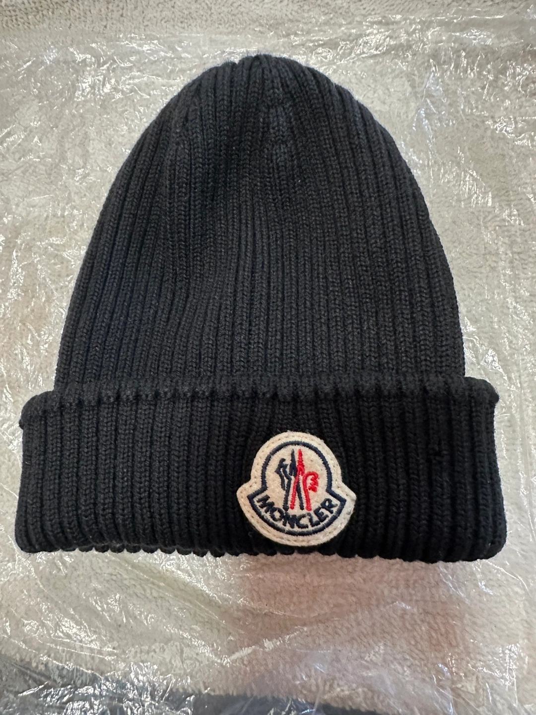 Used 2019 MONCLER Black Berretto beanie hat I have it in my dresser for years I believe it’s real I got it gift from a tenant I was his doorman NYC 20yrs it has labels and model number and made in Italy all checked out good only used like 5 times thank you pick up Bronx or meet at safe zone 42pct Bx