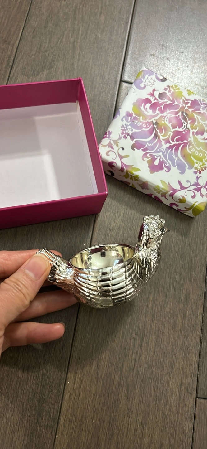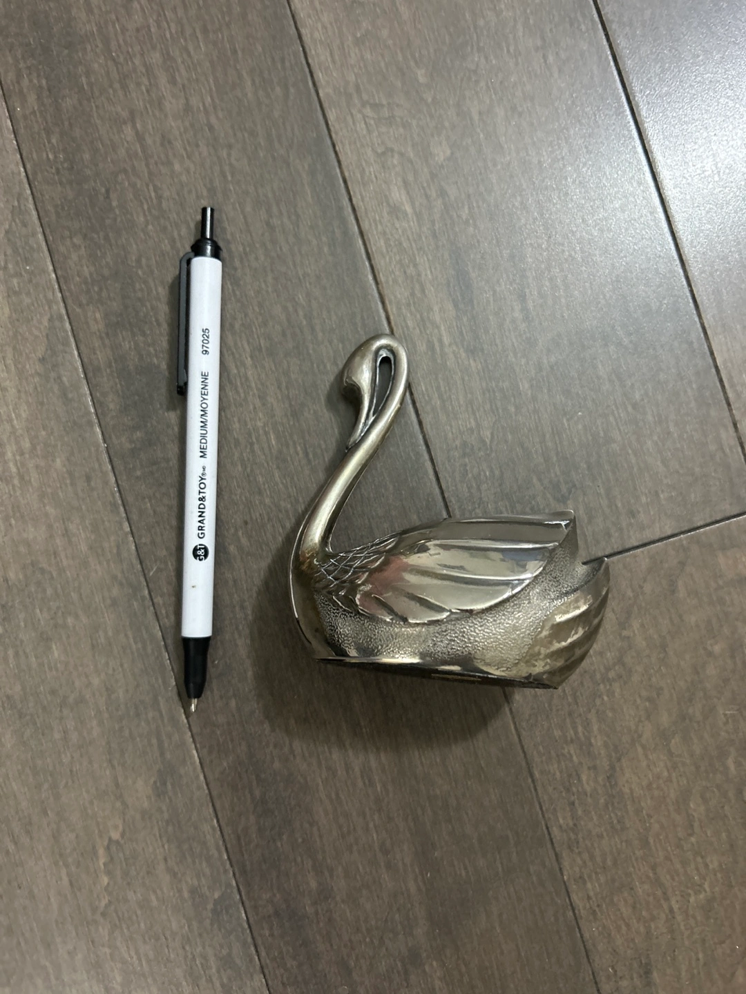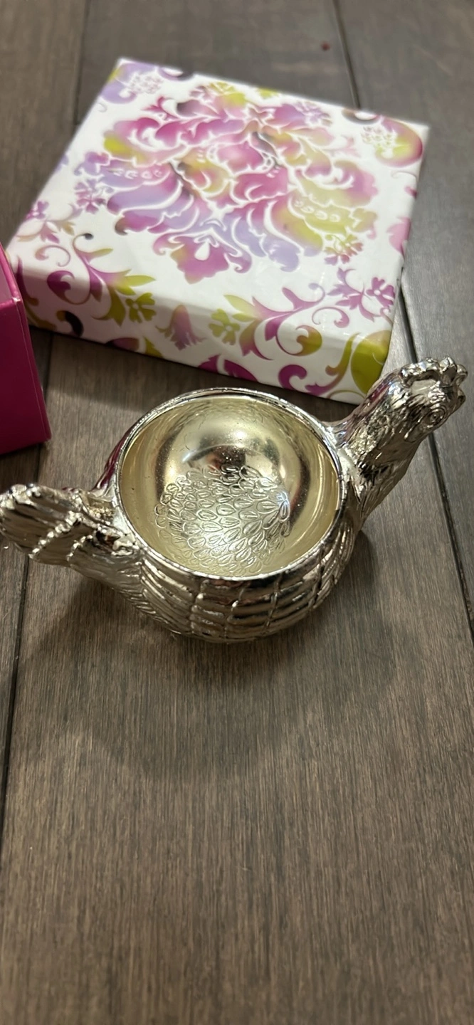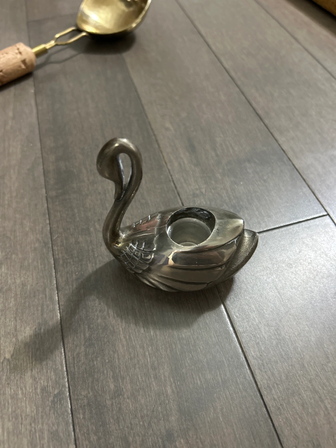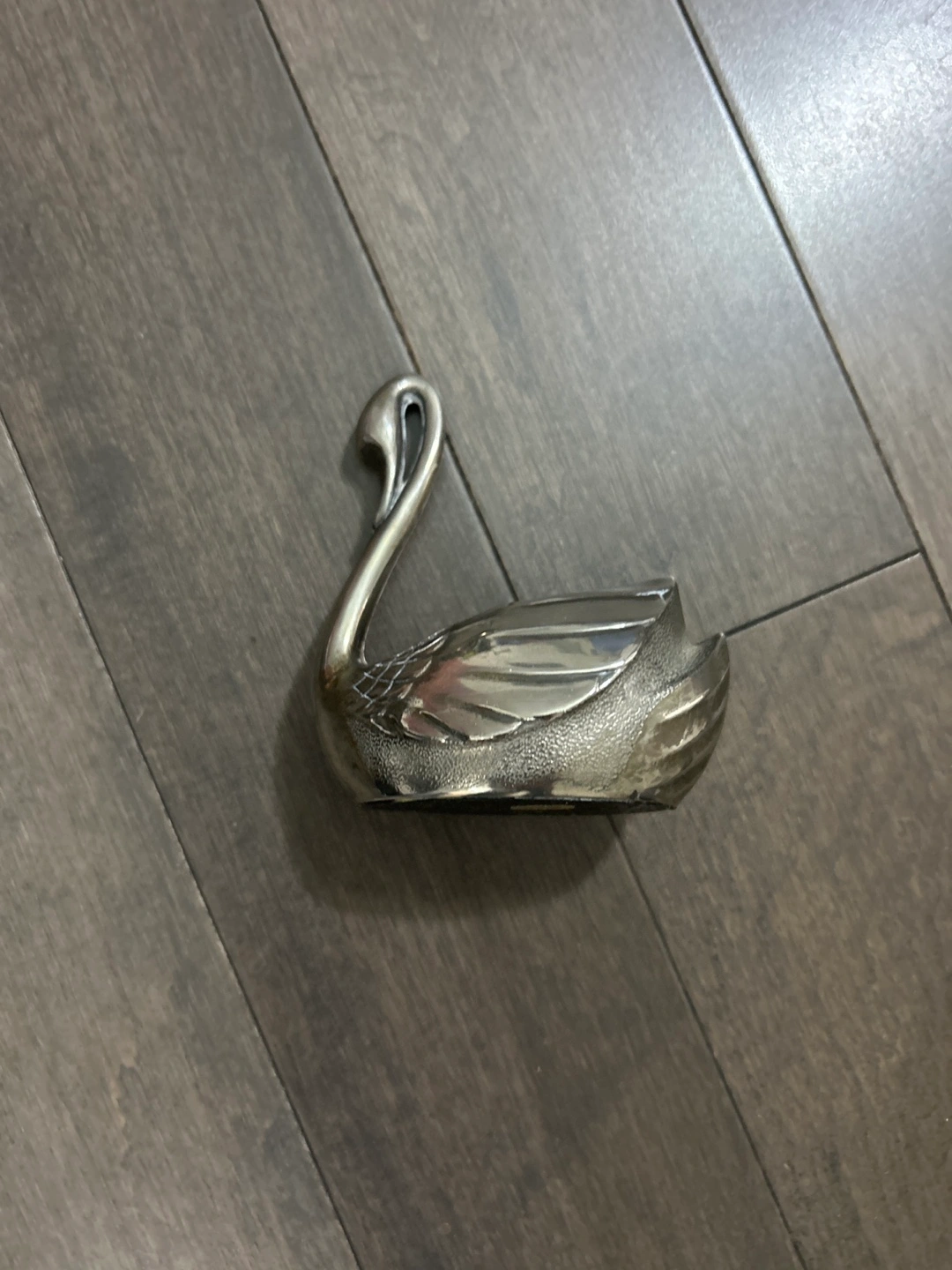 181Wedding ring holder in your washroom or bedroom while you do your business. Silver swan trinket dish, perfect for jewellery or small items. Also for holding a candle. Measures approximately 5 inches long.