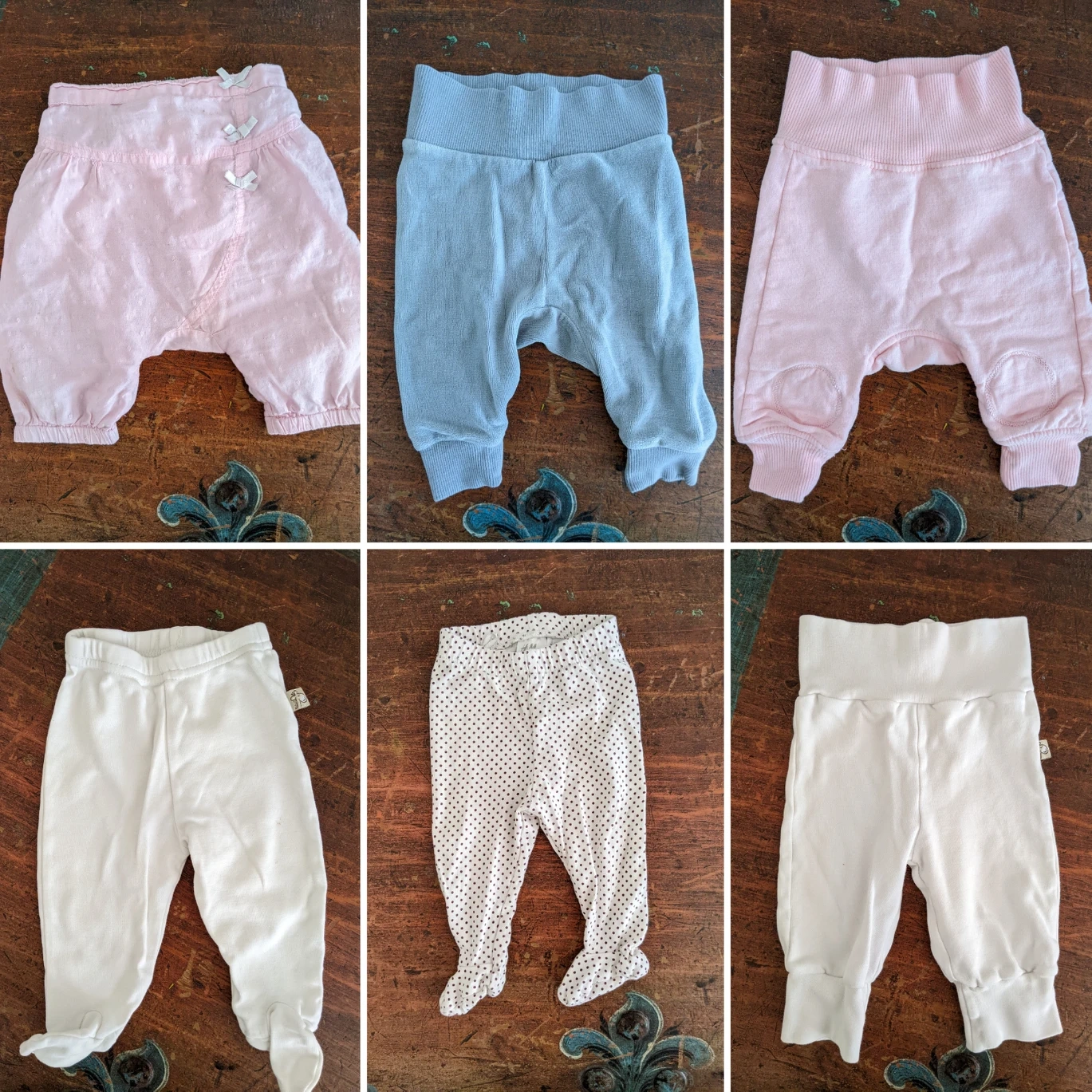 $5 for all pants. Sizes 50-56. I also have more newborn baby clothes not photographed that I can add for free.