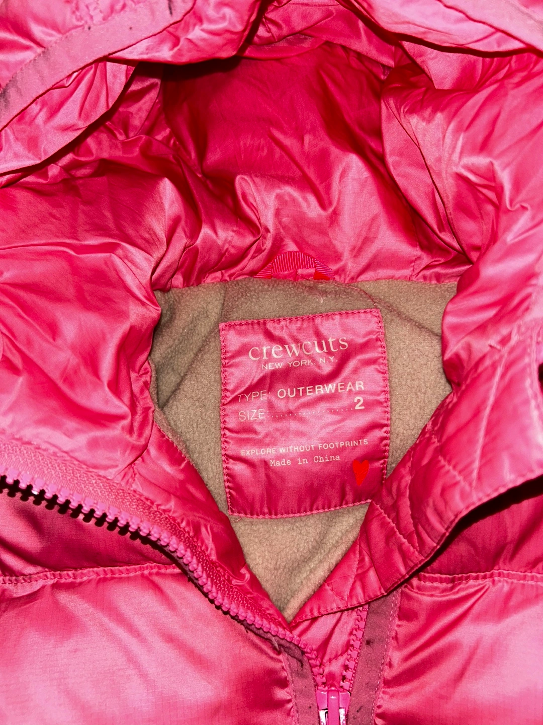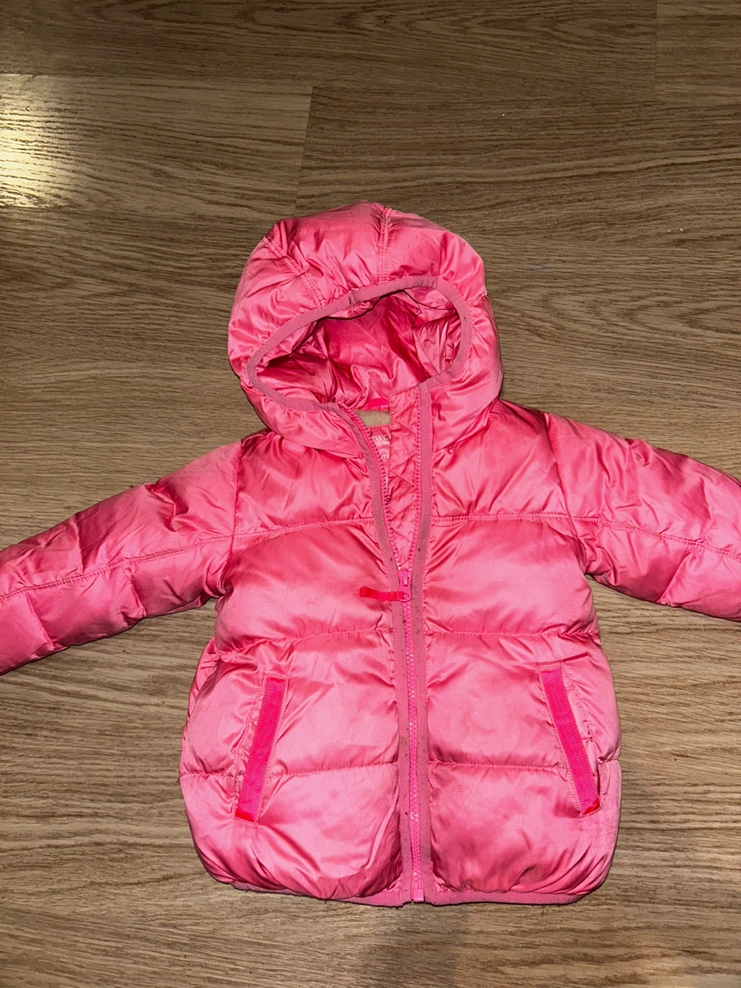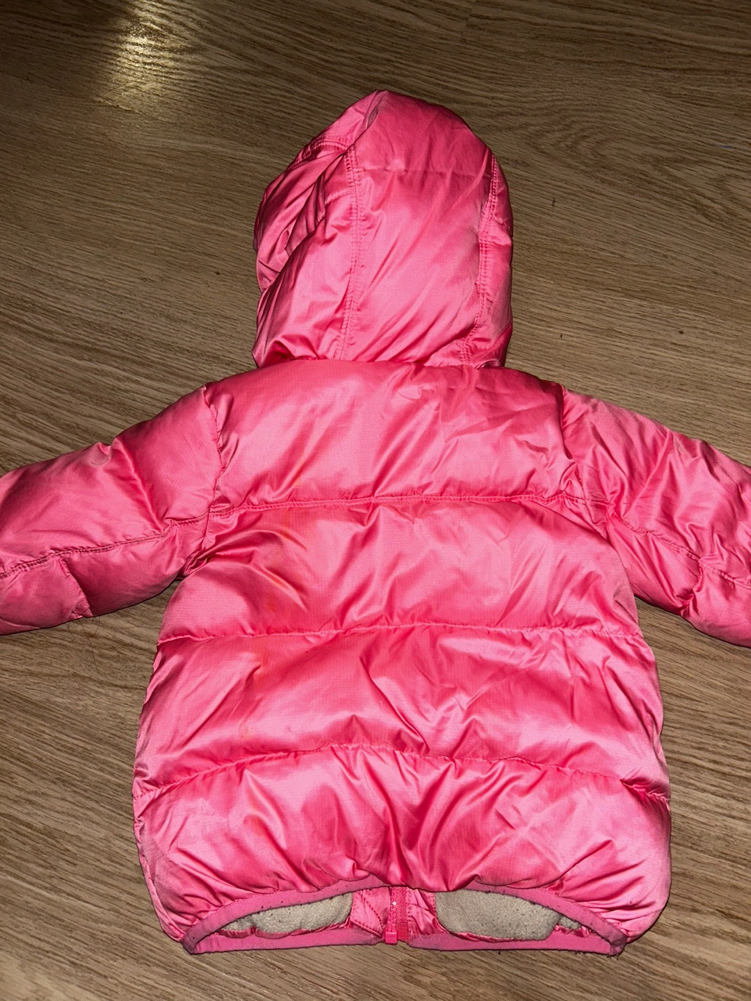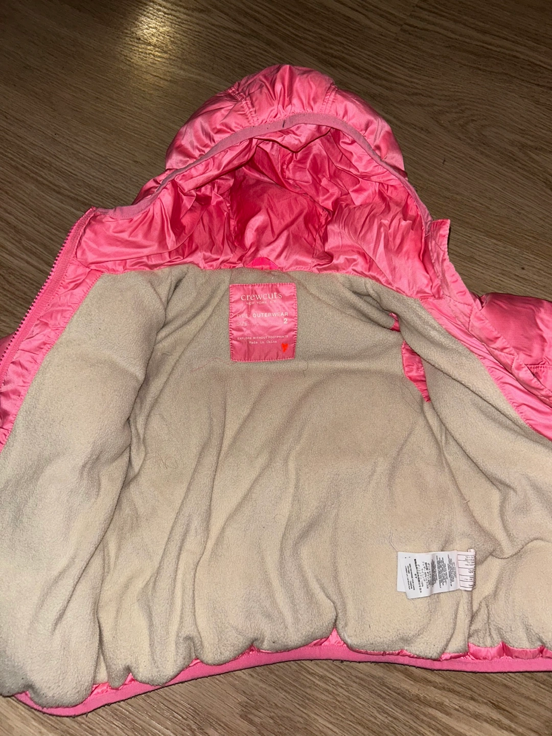 Jcrew toddler Pink puffer jacket with a hood. Fleece lining. 60% down filled.