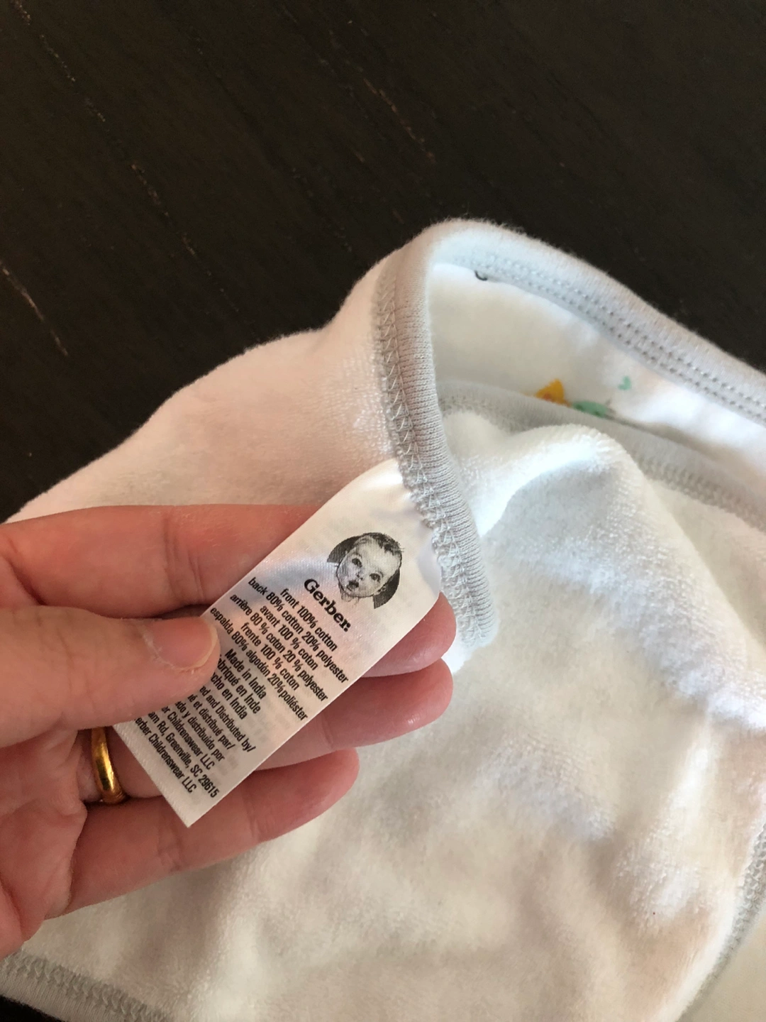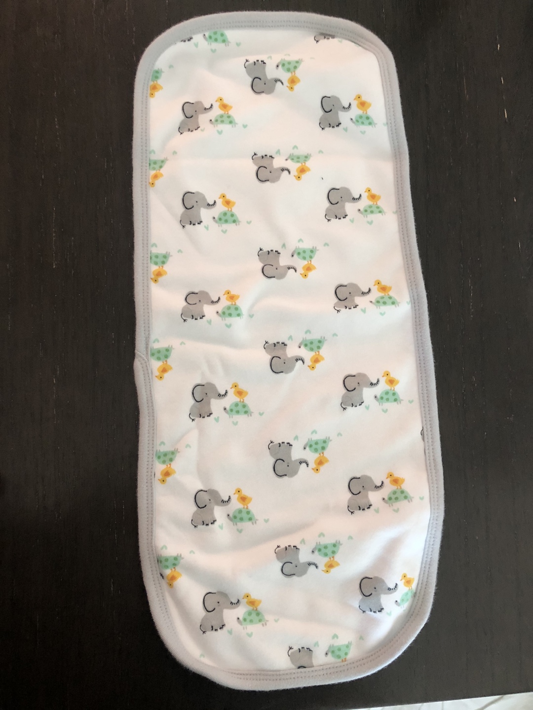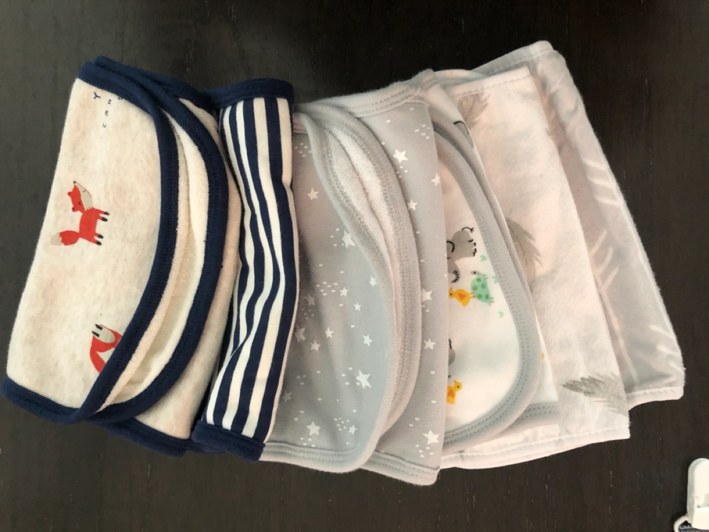 100% cotton, Gerber burp cloths. I bought too many, didnt get to use these. Last two grey ones are free.