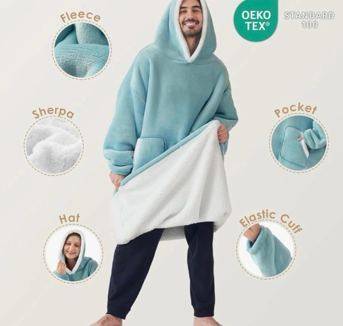 Wearable oversized hoodie blanket. Super soft and warm fleece hoodie blanket.