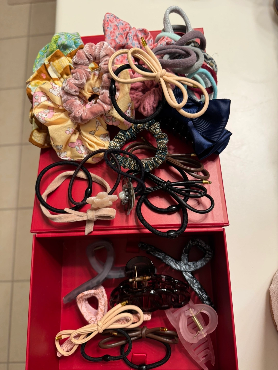 510Set of hair accessories. Includes scrunchies, elastics, and claw clips.