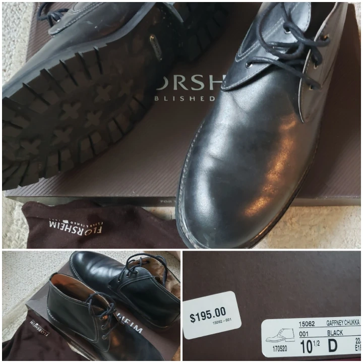 Florsheim chukka boots black, 10.5 size, in original box abd duster bag. Makes an excellent gift. Very good condition. pick up Sheppard/Bathurst. $50.