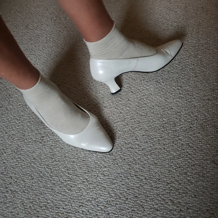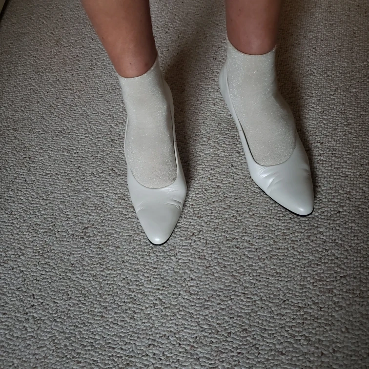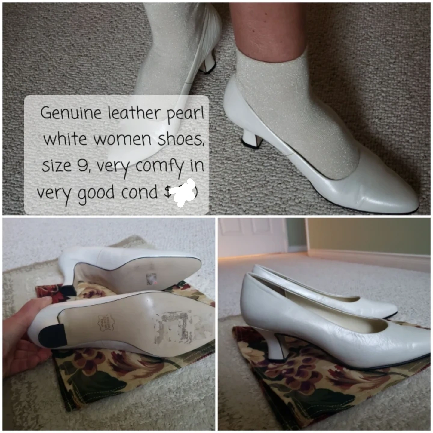 Genuine leather, pearl white, comfy shoes. Very good condition.