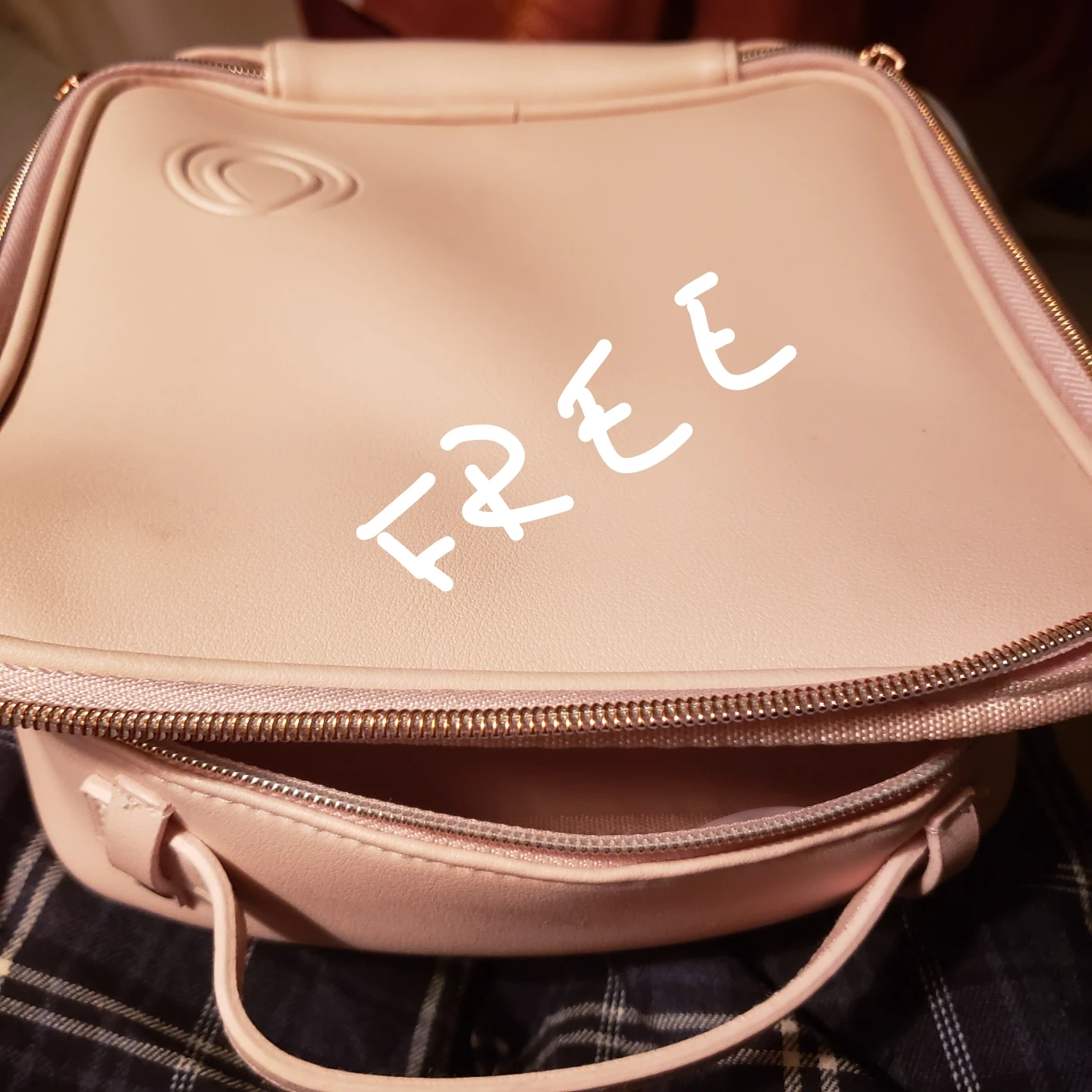 Small pink makeup bag with a zipper closure and a handle. The bag has a gold zipper. #freecycle