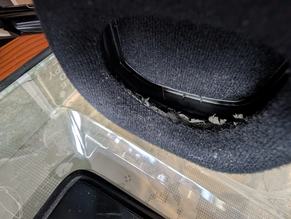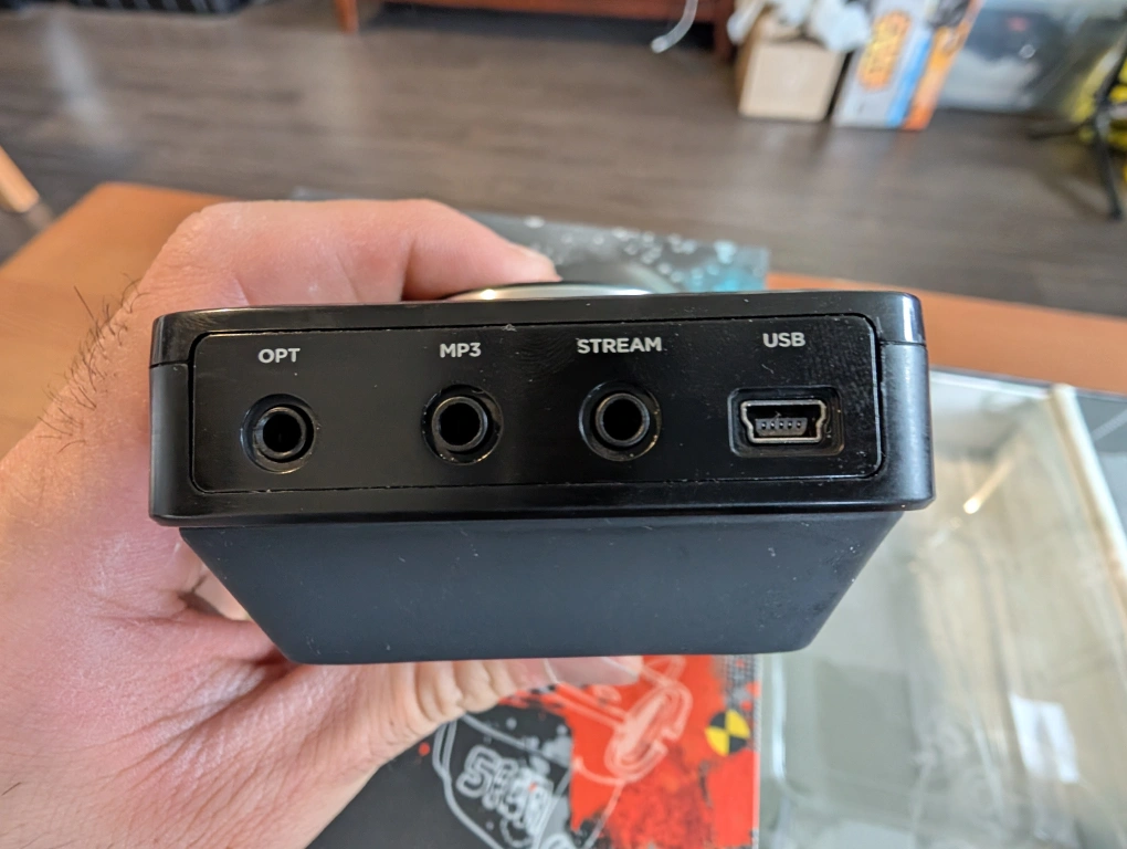 Used but in pretty good condition. As pictured, some of the leather on one side is peeling off. Comes with all the cables.