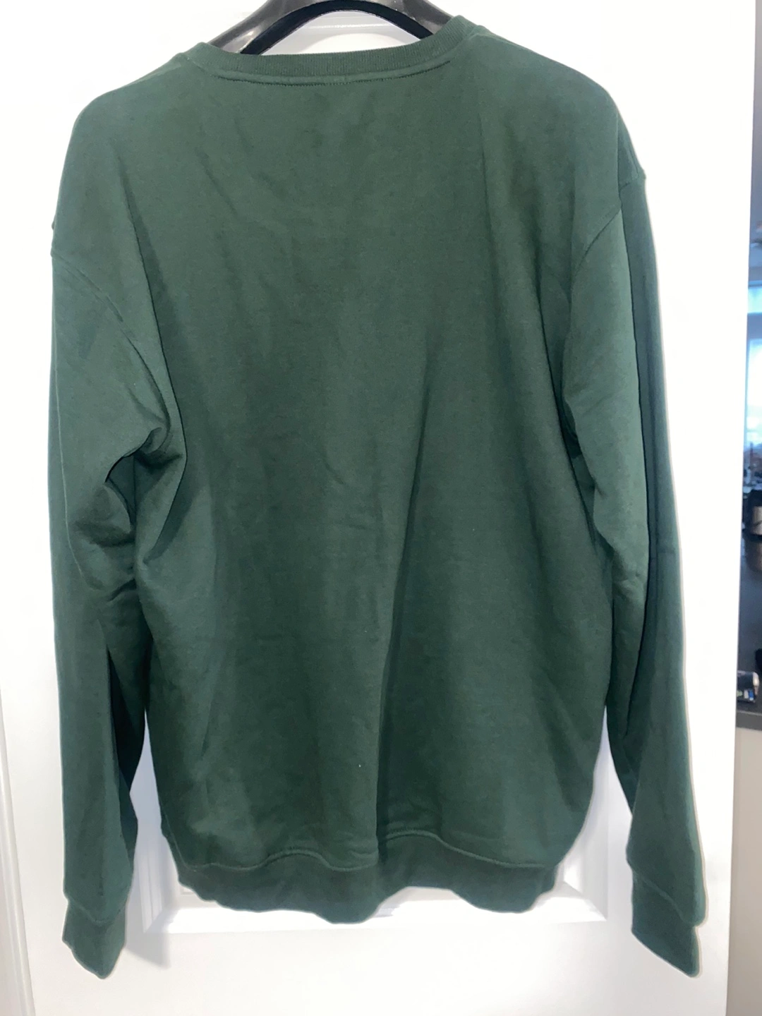 Green crewneck sweatshirt with a white graphic of sunglasses that says 'Bar Rig' and 'Est: Toronto 2016'.