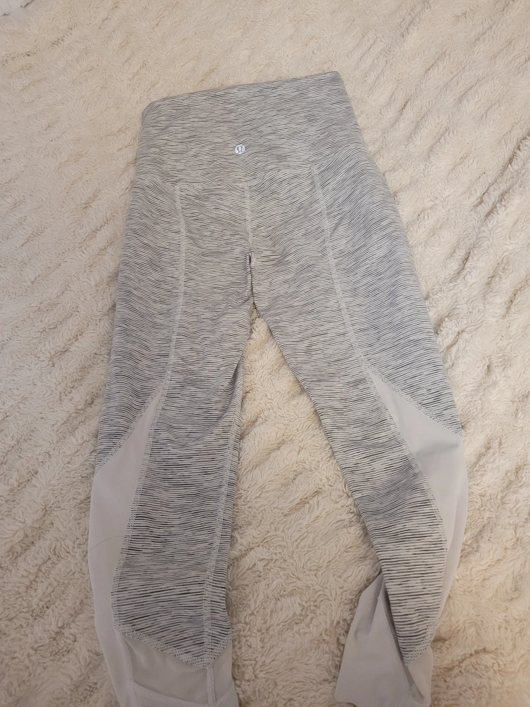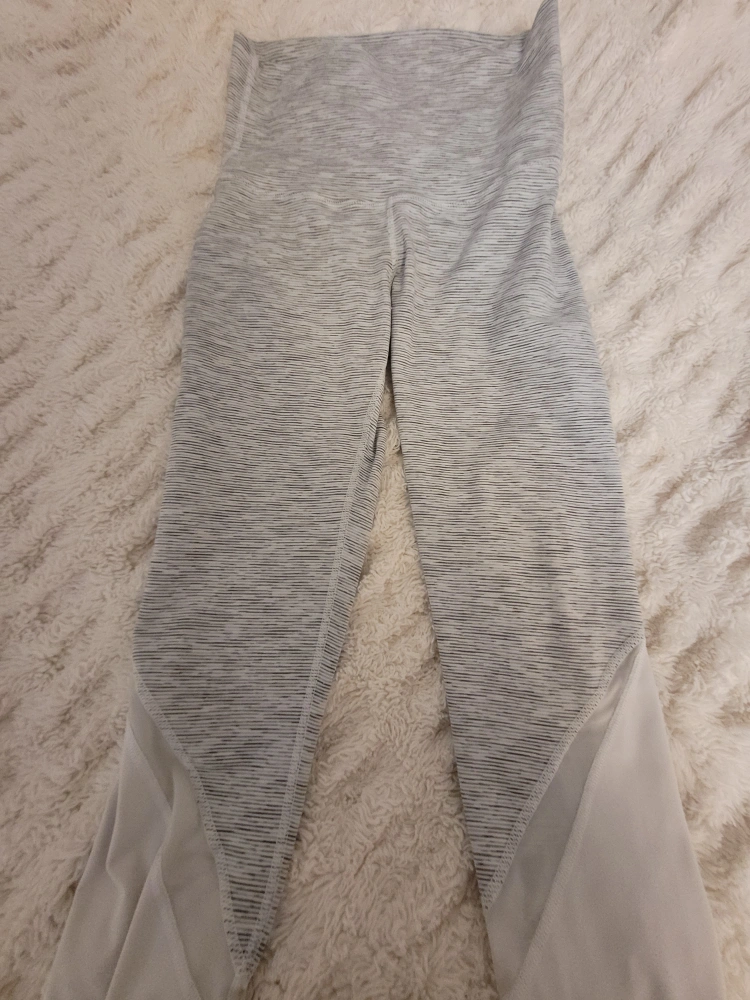 grey and white leggings . high waisted, cropped length. not sure exact size because they were handed to me without tags, but somewhere around 2-4. great condtion!