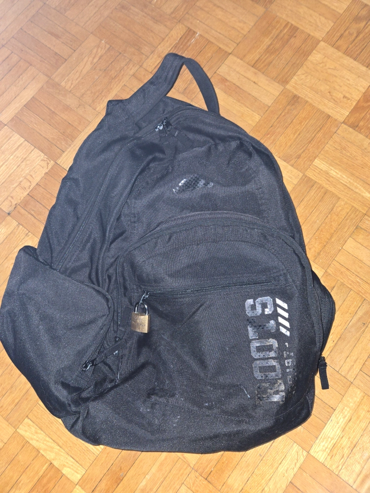 Large, Roots backpack. In good condition other than one strap lost the plastic adjuster. And sorry, no key for the random lock 😅