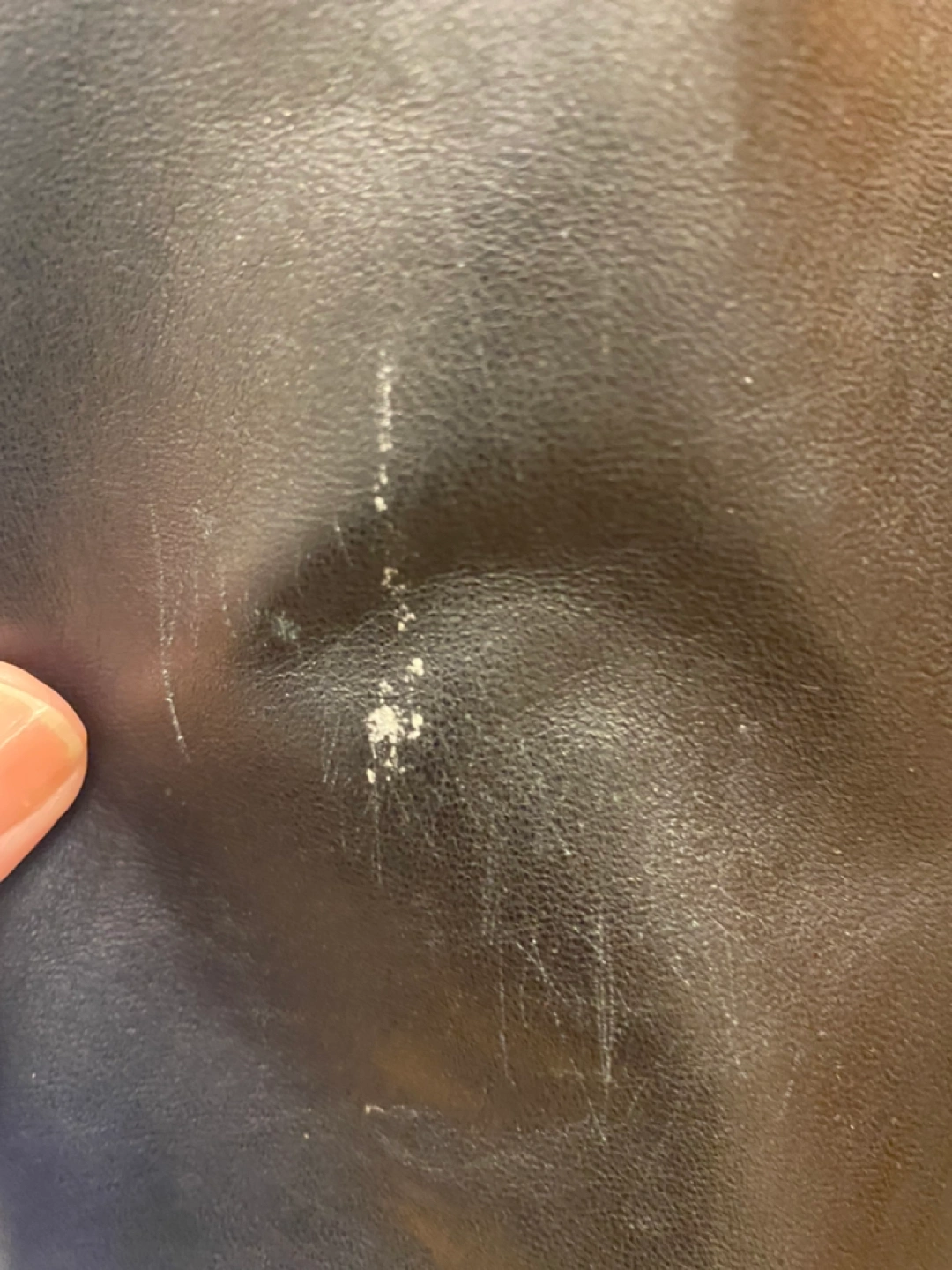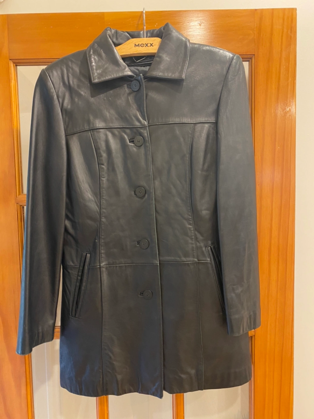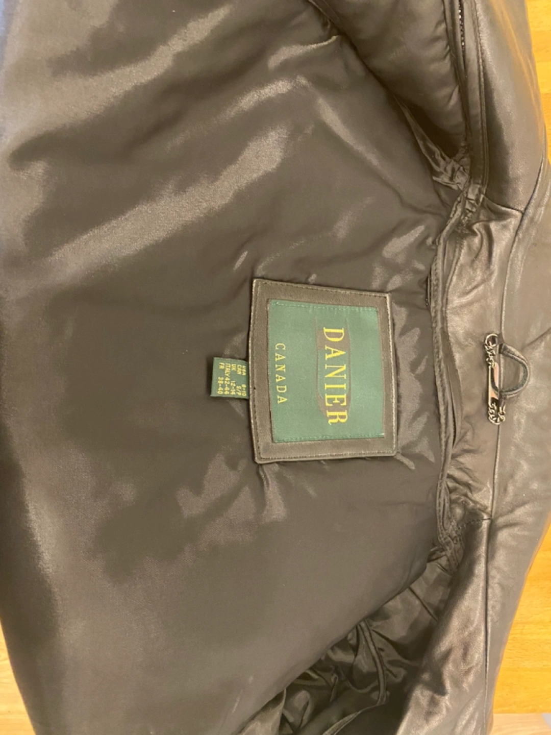 Gorgeous Danier, black leather jacket. Size small (8-10 US). Removable inner liner and polar fleece lined pockets. Great condition. Small scratch (as pictured) on right upper sleeve.
