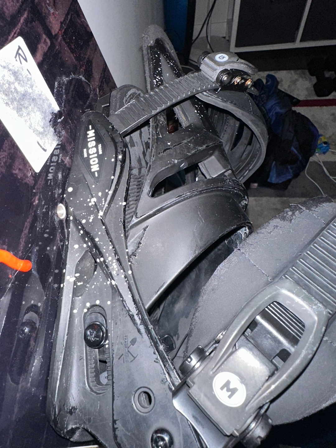 Comes with Medium Burton Mission bindings.