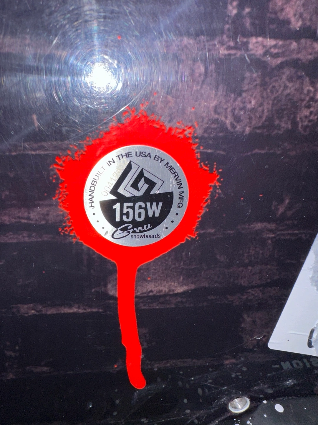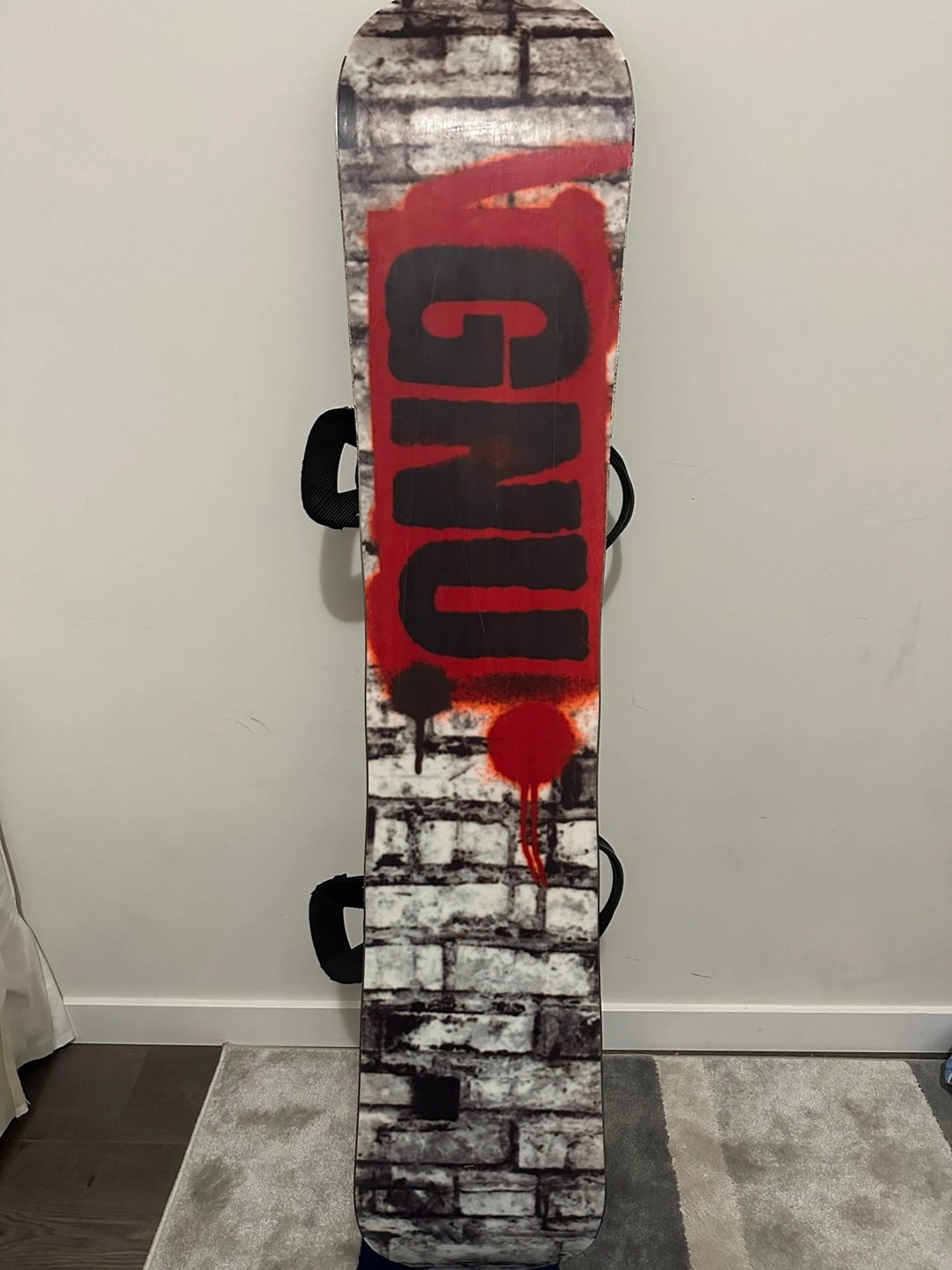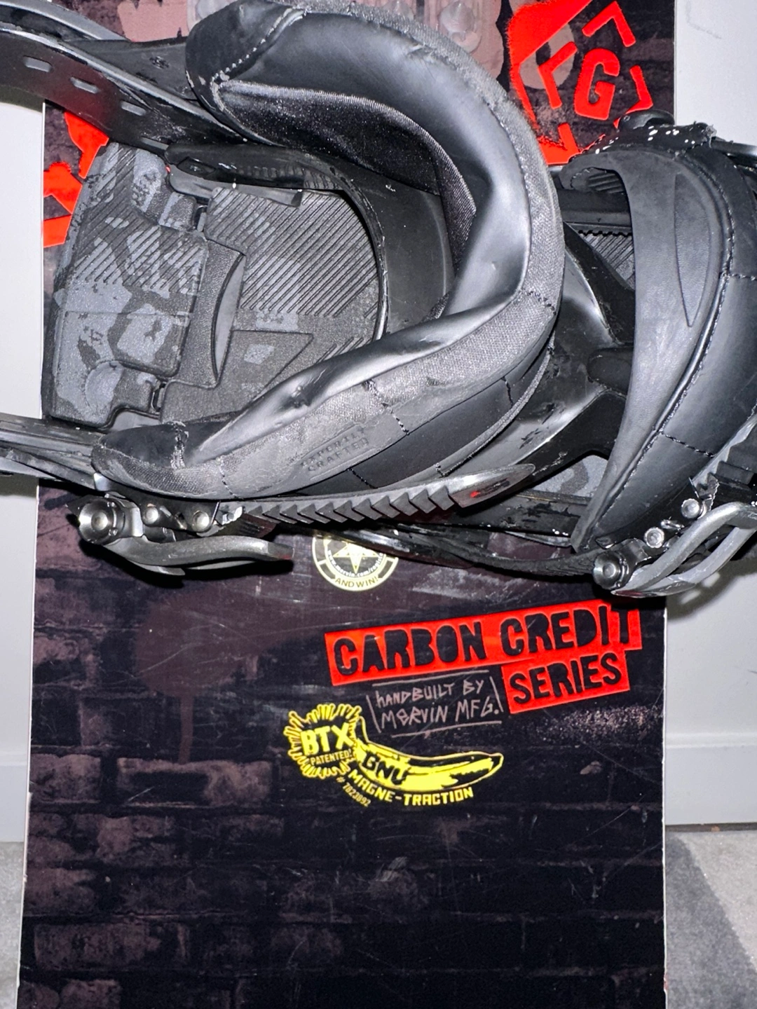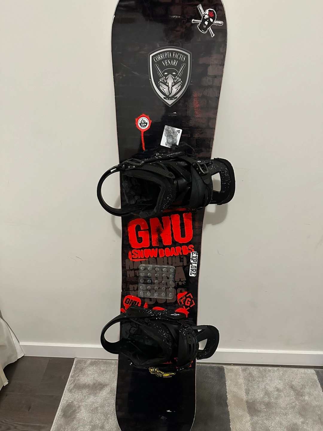 GNU snowboard with bindings. Handbuilt in the USA by Mervin Mfg.