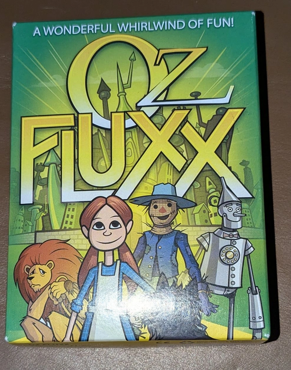Card game, Flux, with 100 cards and instructions. 2-6 players, ages 8-A, 10-40 minutes. A wonderful whirlwind of fun! Does life seem drab and humdrum? Let the cyclone of fun and craziness. Follow the Yellow Brick Road to see the Munchkins, make new friends, and see the Wizard; but keep a bucket of water handy - you never know when you might need to melt a Wicked Witch. Next stop...the land of Oz!