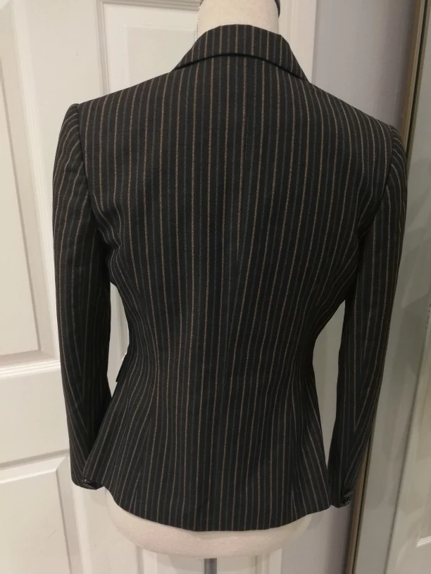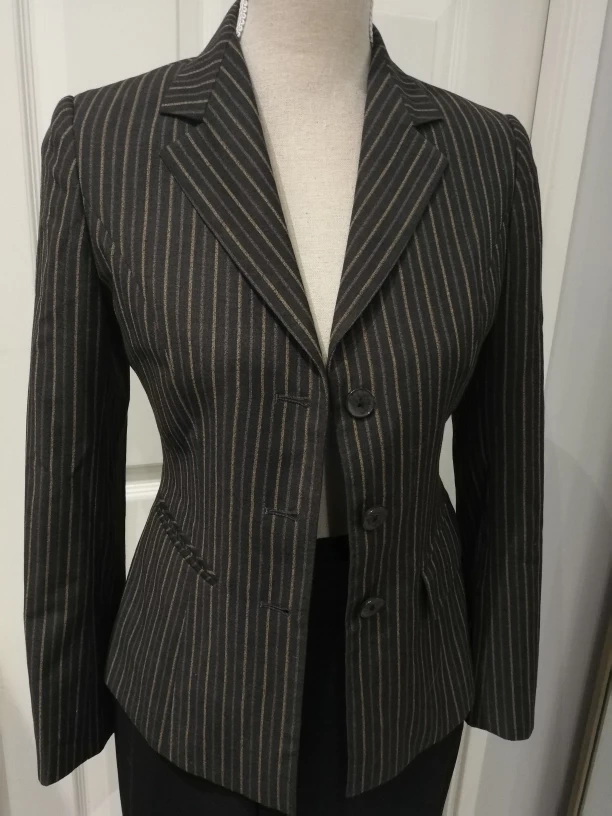 1000+Dark brown classic striped blazer with lining, light grey and light brown stripes, can go with matching colored bottoms Women size XS-S chest fits 34" if button up Pick up in downtown close to St Patrick station (Dundas-University area) or Yonge-Bloor