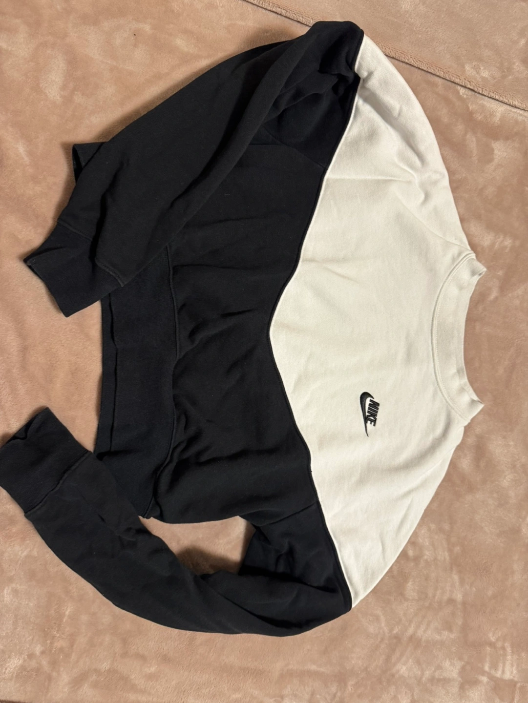 Black and white colour block crop top. Long sleeves.