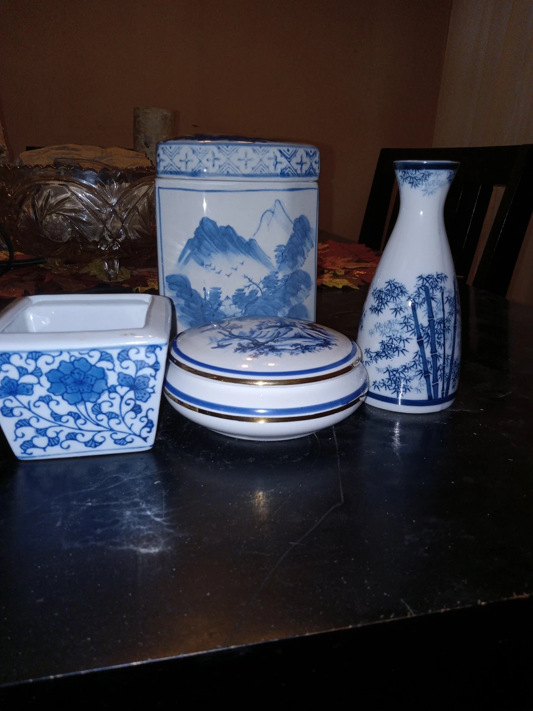 I am selling a 4 piece oriental set that I no longer need. All are in excellent condition with no cracks.