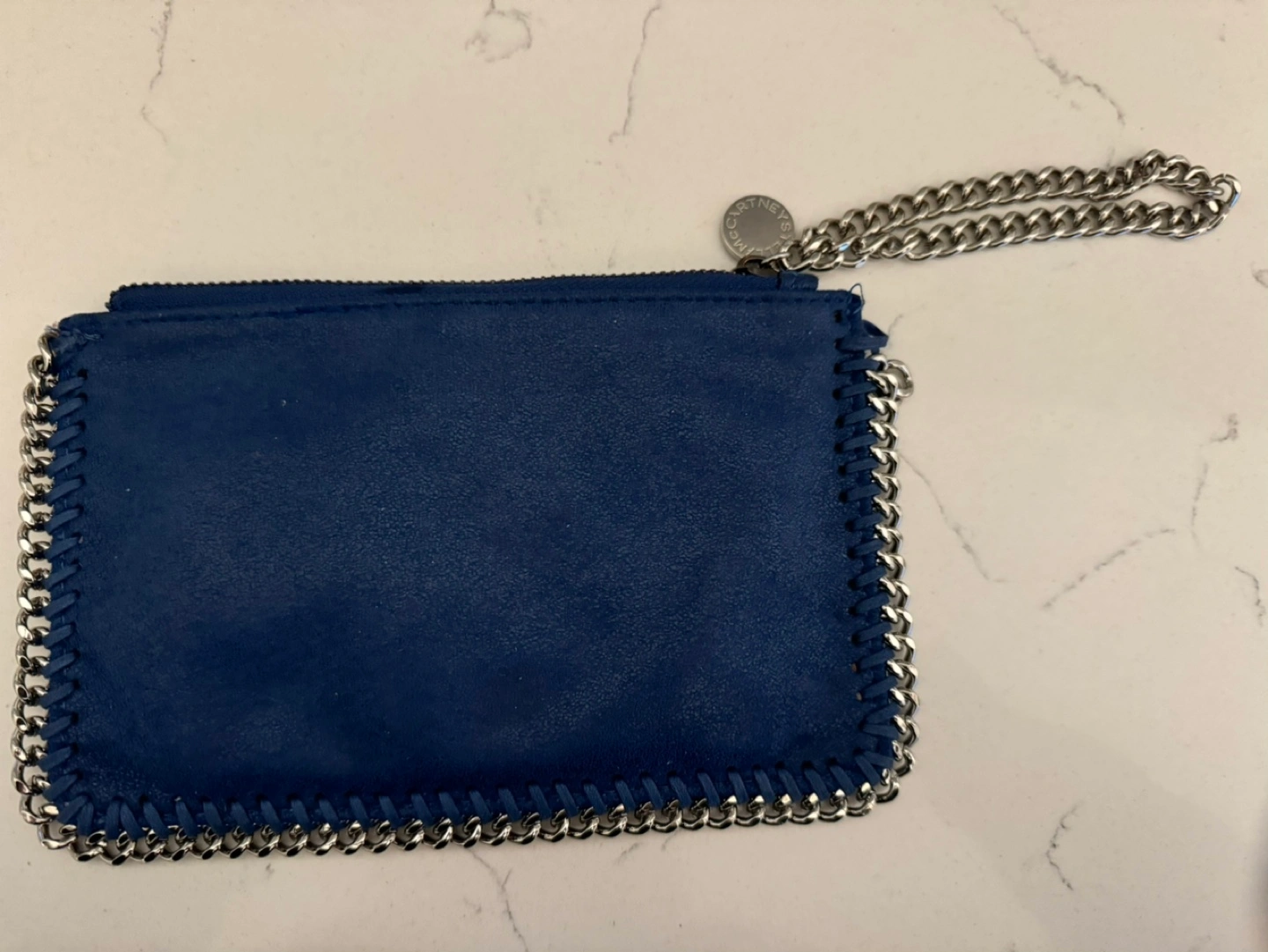 Stella McCartney Blue chain wrist let with silver chain strap.