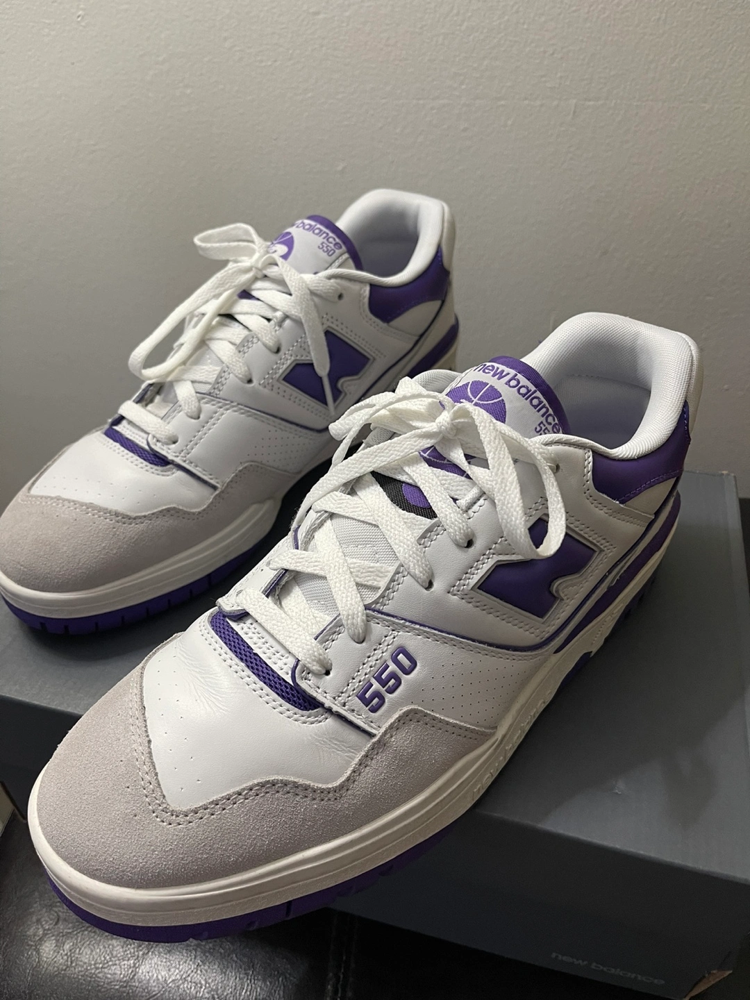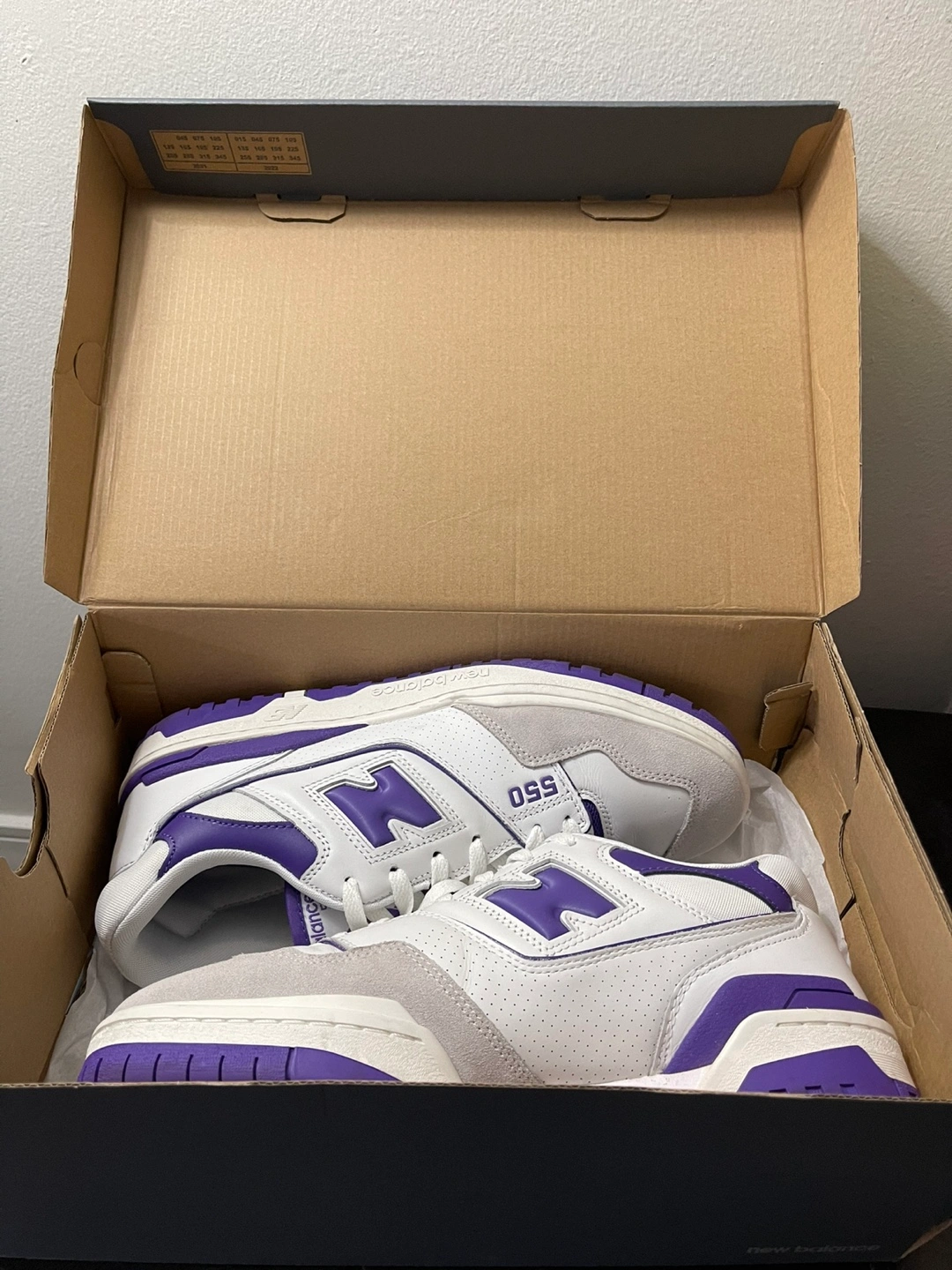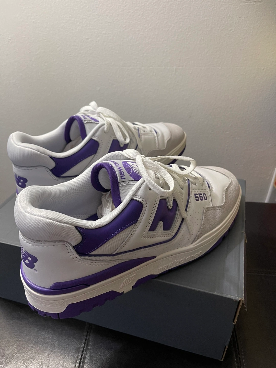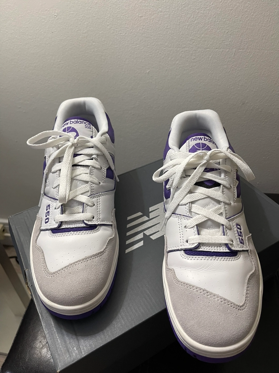 New Balance 550 sneakers. White and purple colourway. Reduced from $110 to $80