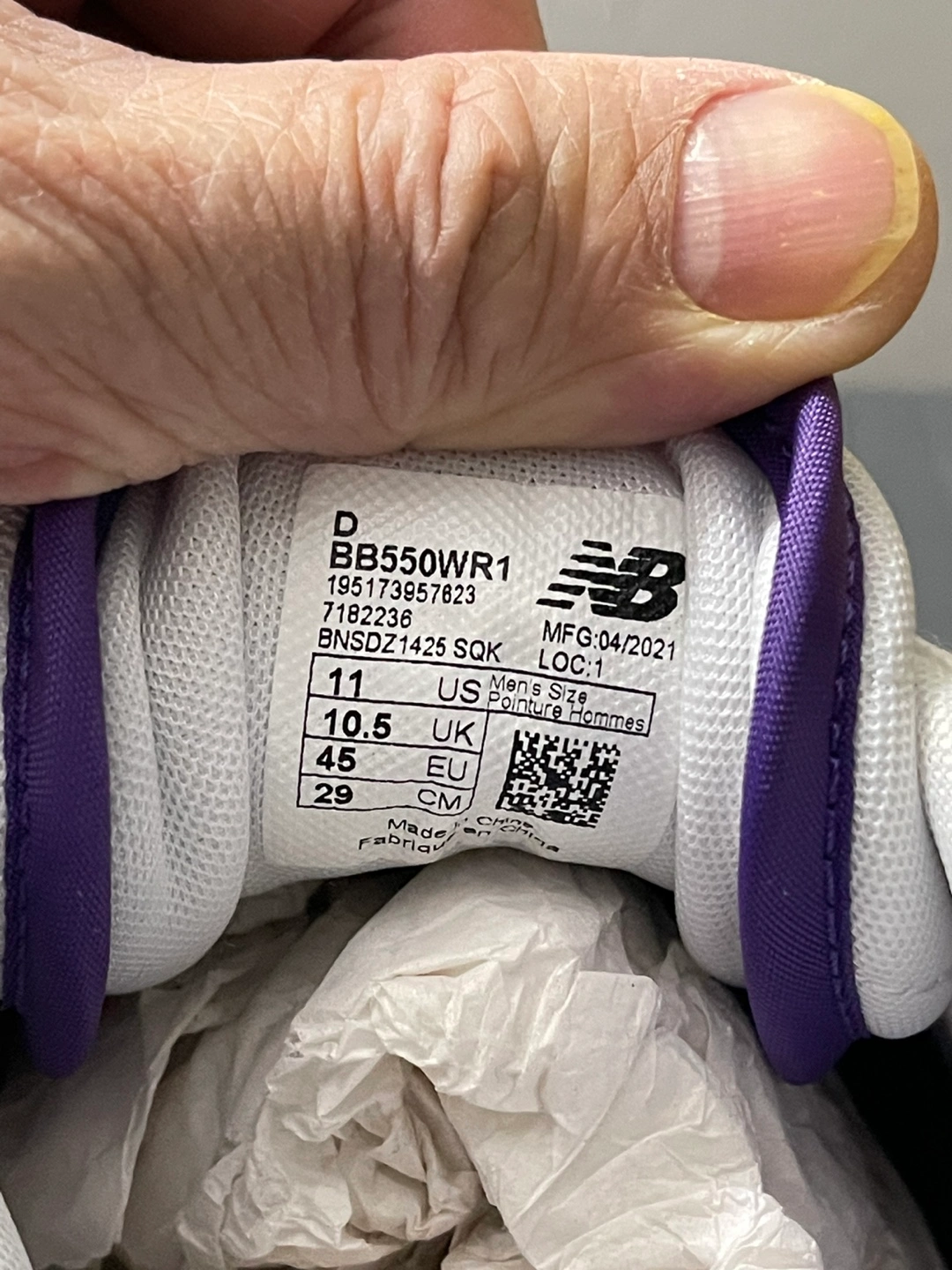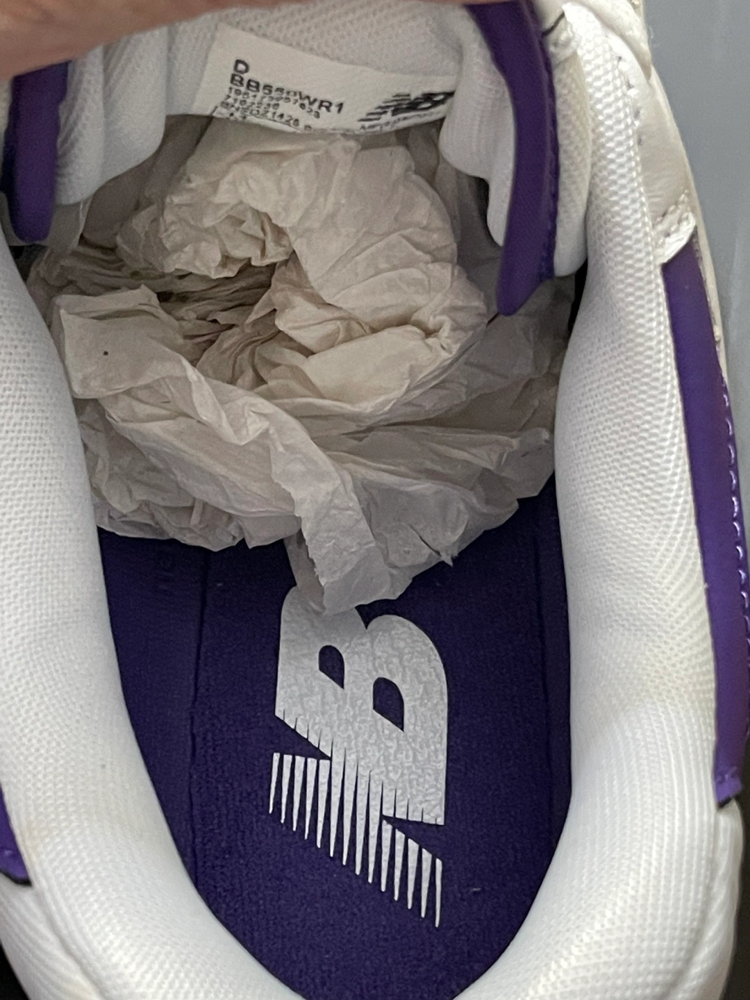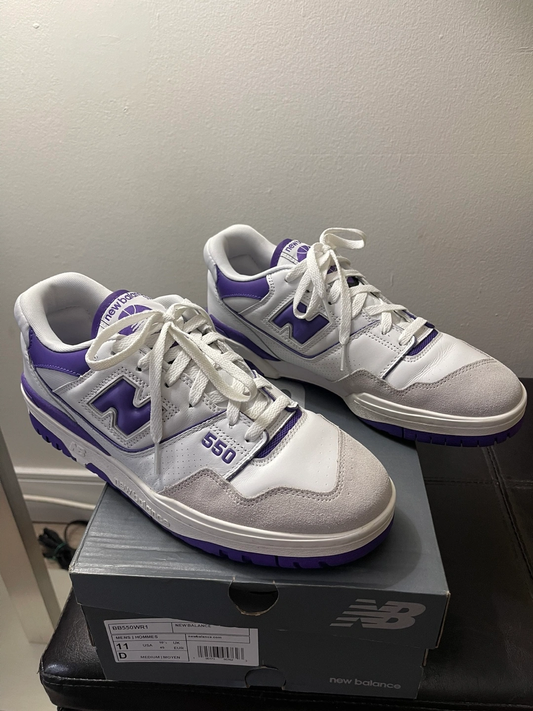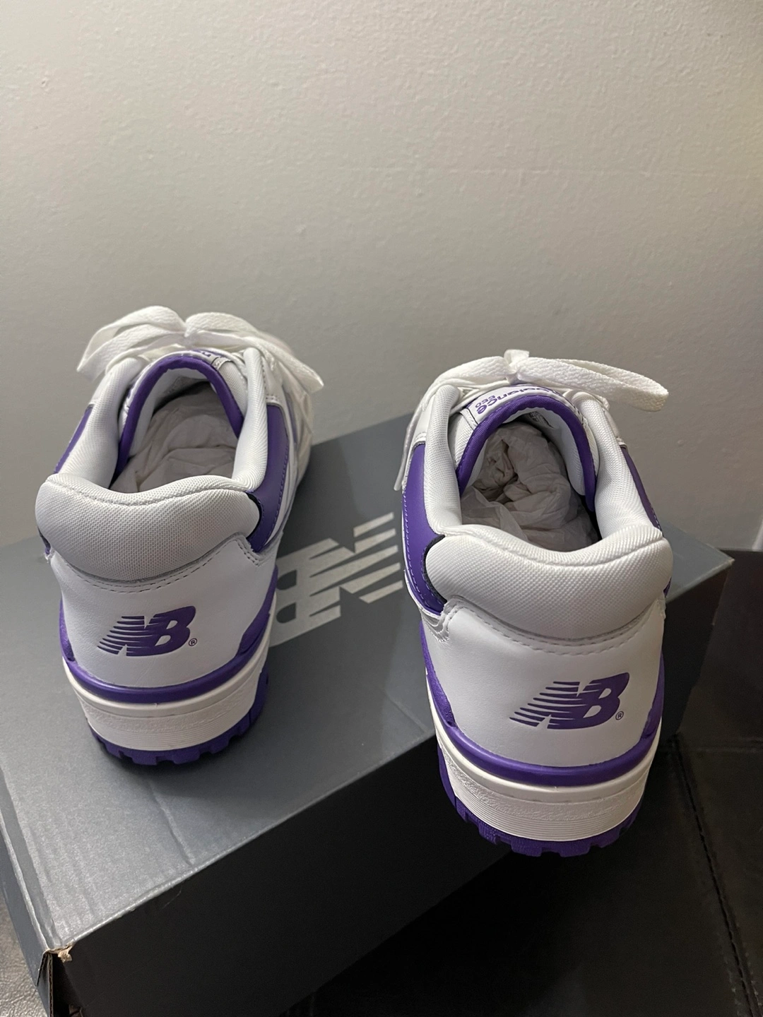 New Balance 550 sneakers. White and purple colourway. Reduced from $110 to $80