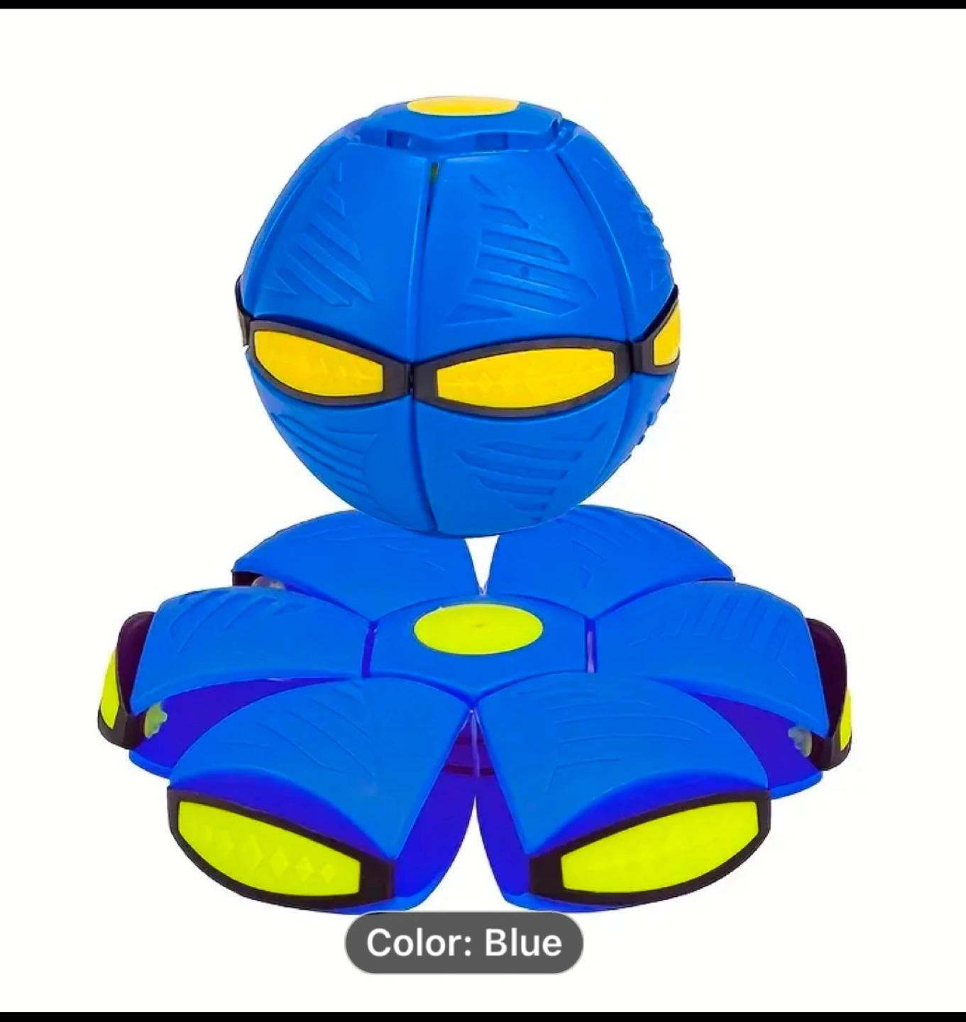 Blue flying disc ball, folds to a sphere shape for easy storage and throwing.