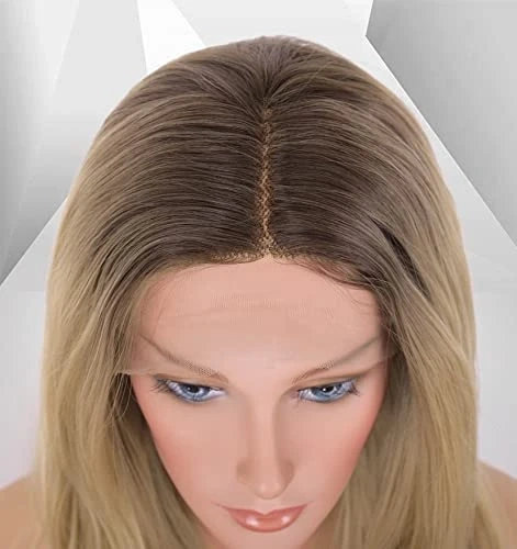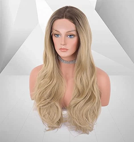 Lace Front Wig 24 inches, Heat Safe Honey Blonde Brown Root
